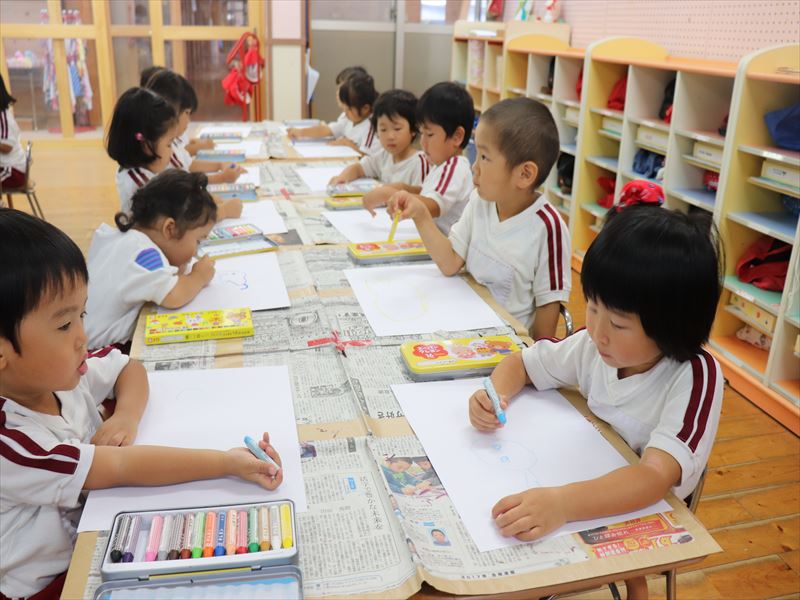年少さん、クレヨンでかきかき