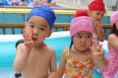 プールが少しずつ慣れてきている保育園部さん