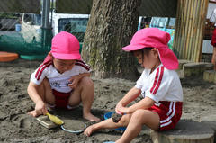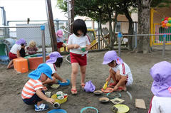 砂場では山を作っていた年中さんです。