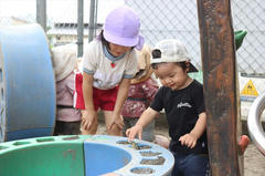 朝の外遊び、それぞれに楽しいことを見つけていた子ども達です。