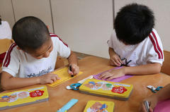 年長さんは夏祭りの神輿作りの製作活動です。