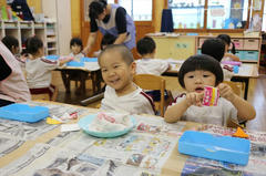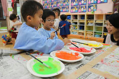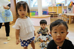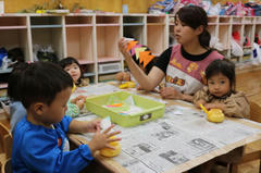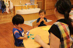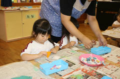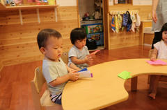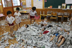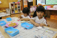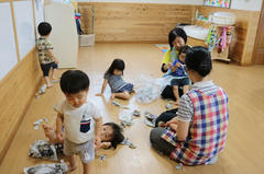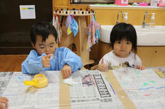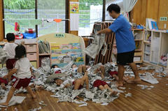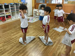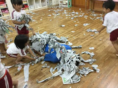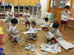 ちゅうりっぷ組さん新聞紙あそびをしていました。