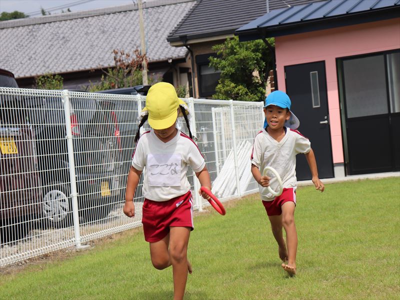 組体操の練習の後は、リレー遊びを楽しんでいました。