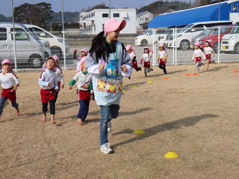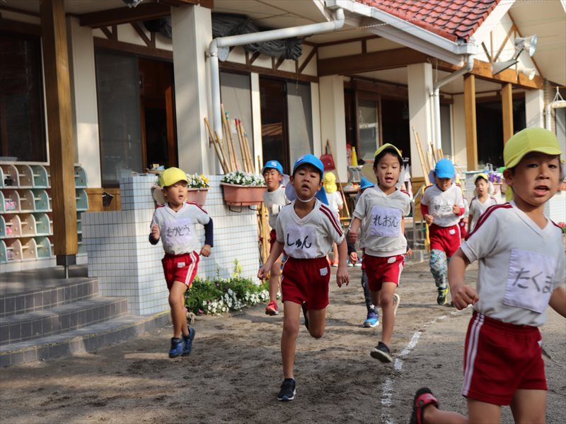 年長さん、朝の体操を行い、マラソン大会の練習です!