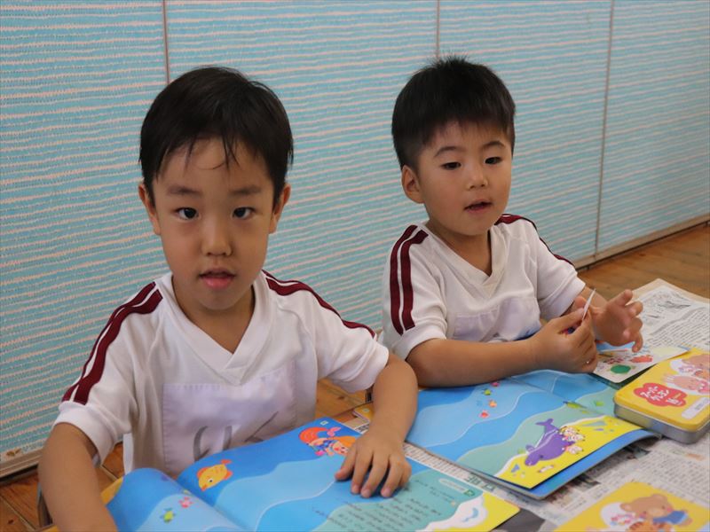 午後の時間は、雨が降っていたので、室内での自由時間でした。