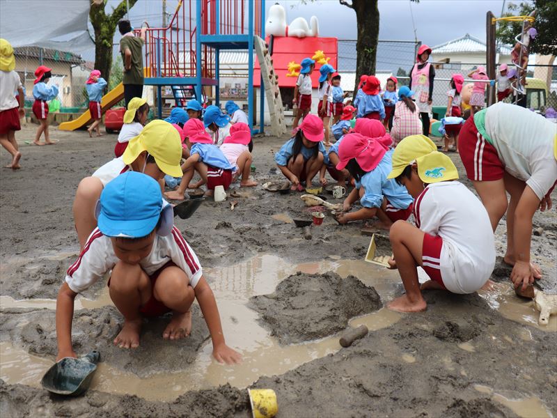 雨上がりの園庭で泥遊び♪