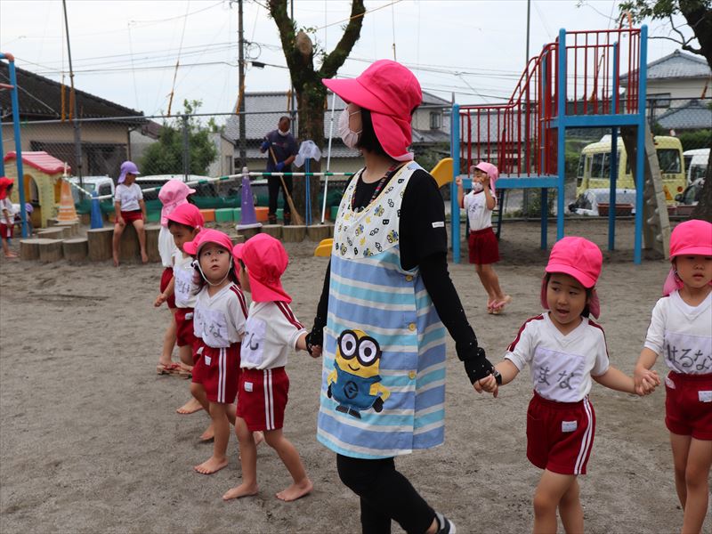 今年は、クラスごとに入ります。今日はうめ組ときく組が入りました。