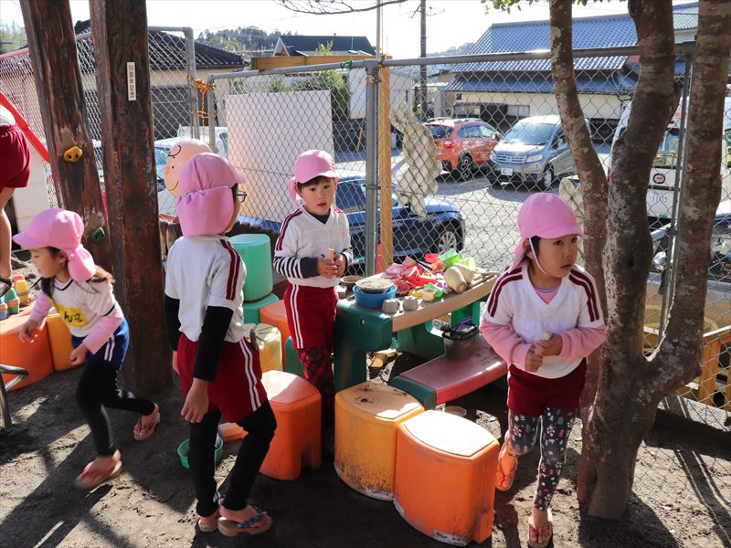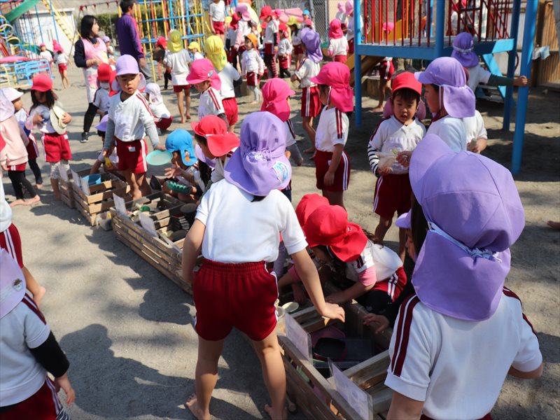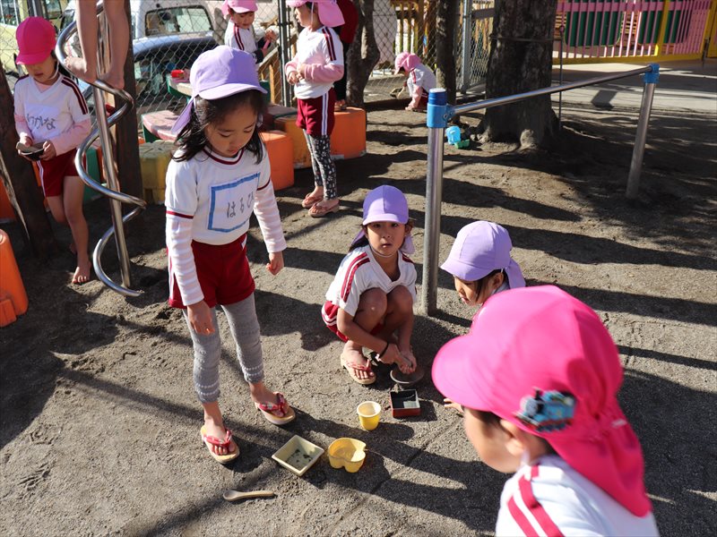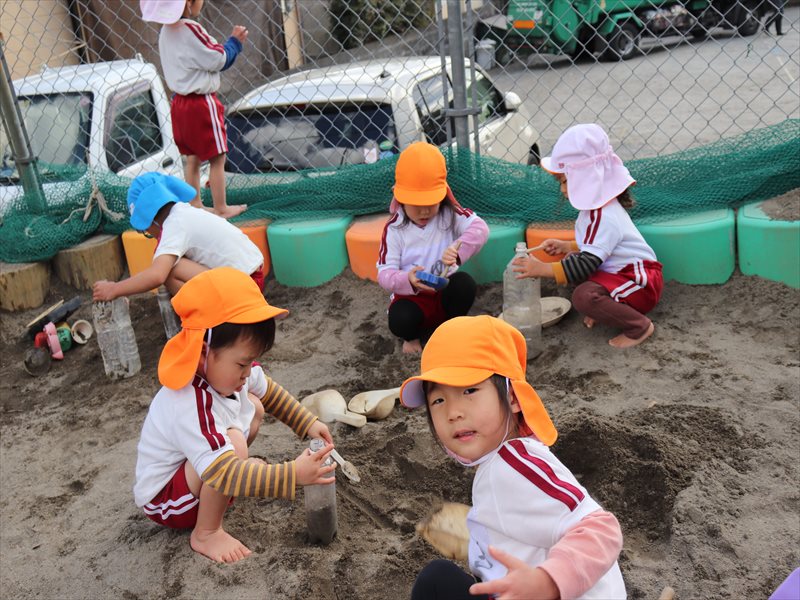 ちゅうりっぷ組さん、砂場でまったり遊んでいます。