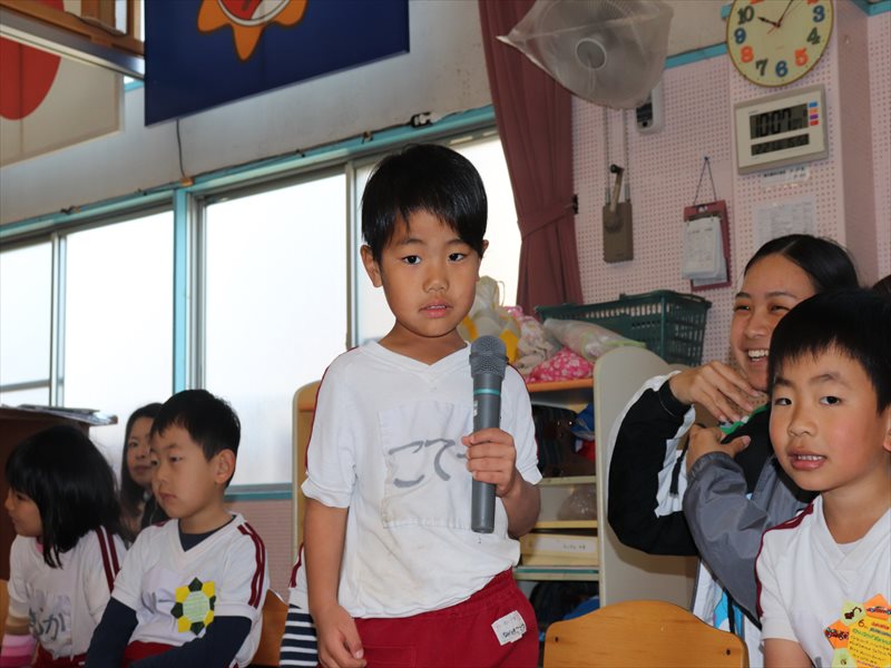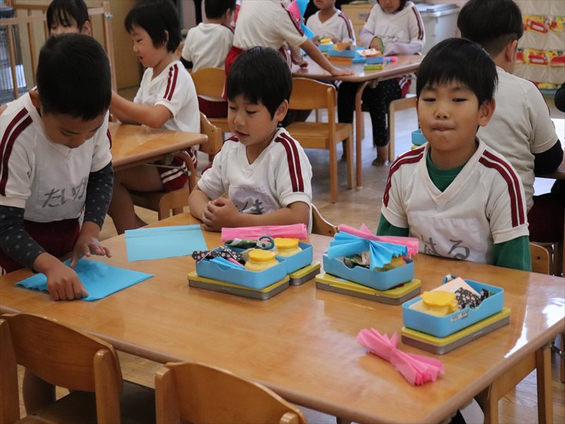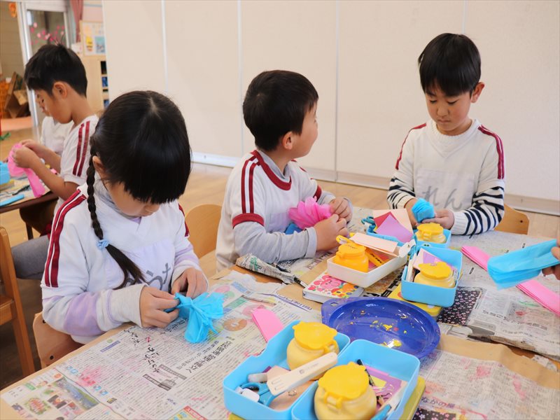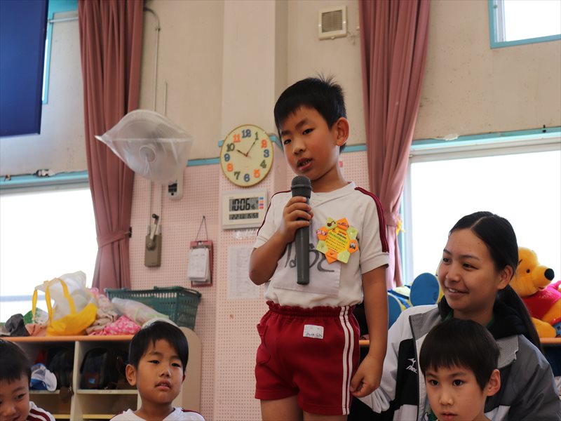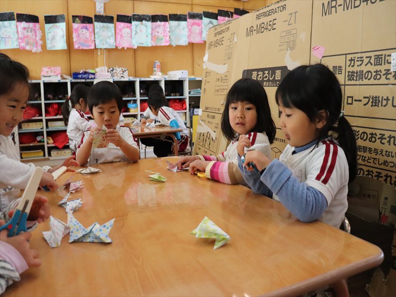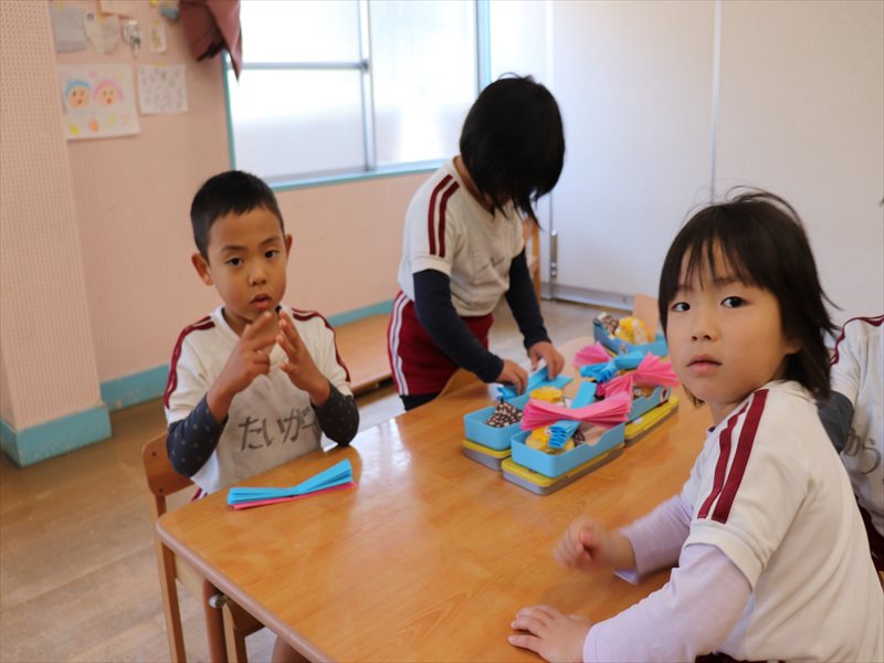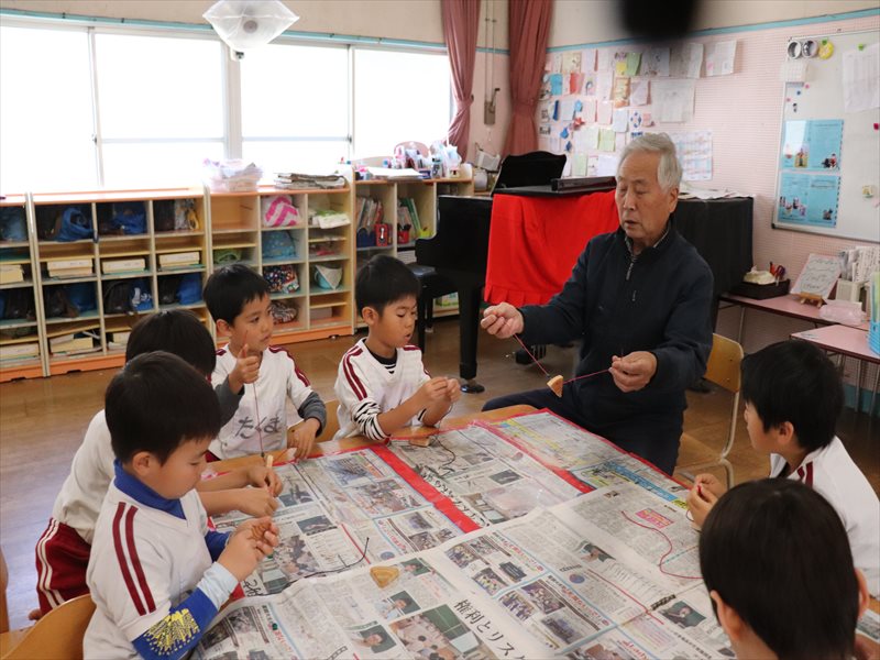 年長さん、宮崎県 木育ネットワークの方々が来て下さり、木のお守り作りをしました。