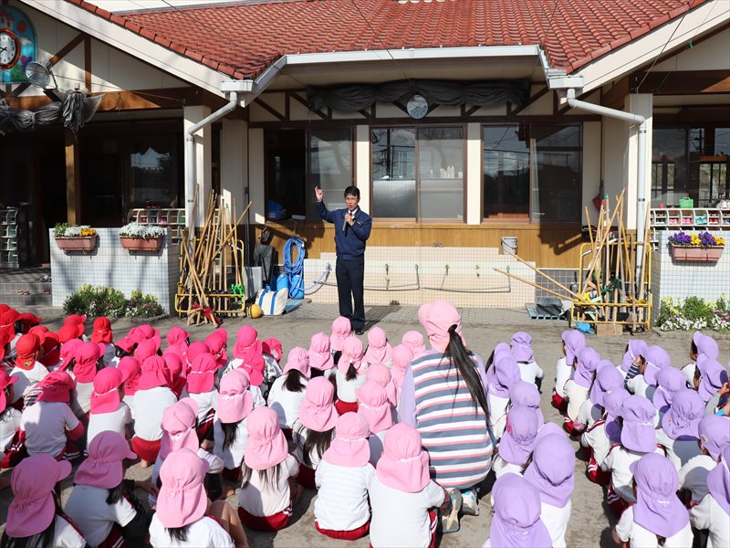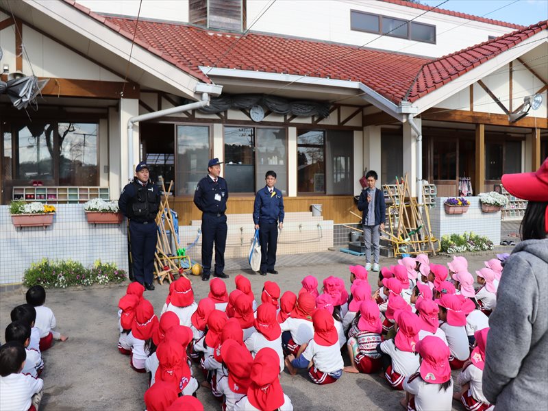 今朝は、不審者の避難訓練を行いました。ALSOK総合警備保障の方々に来ていただきました。