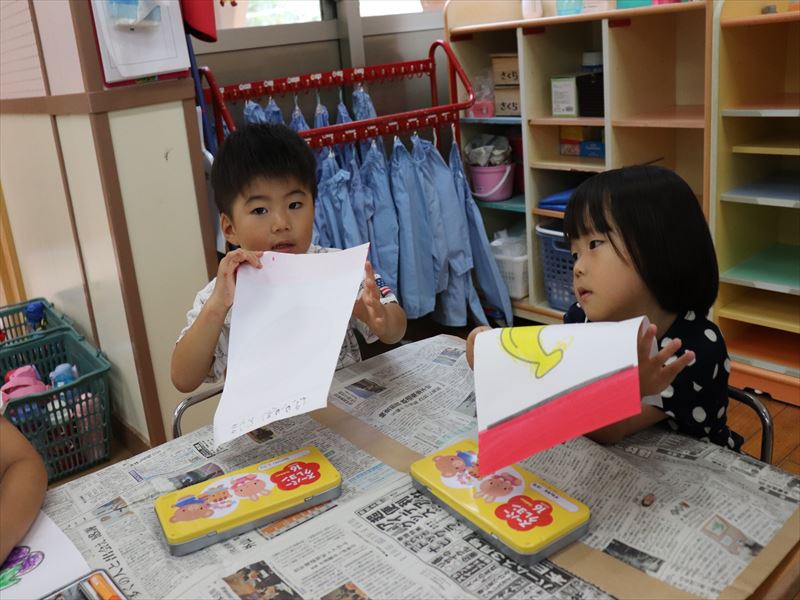 年中さんも折り紙を使っていました。