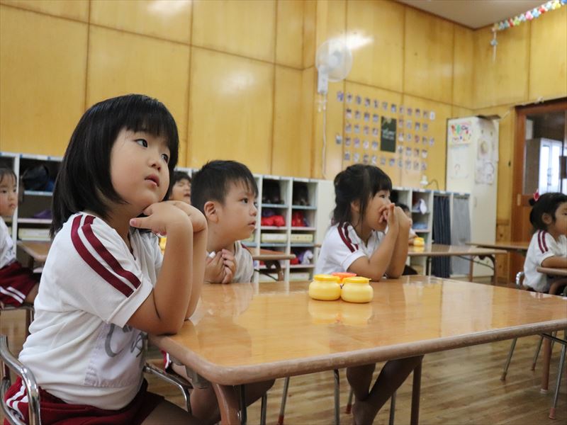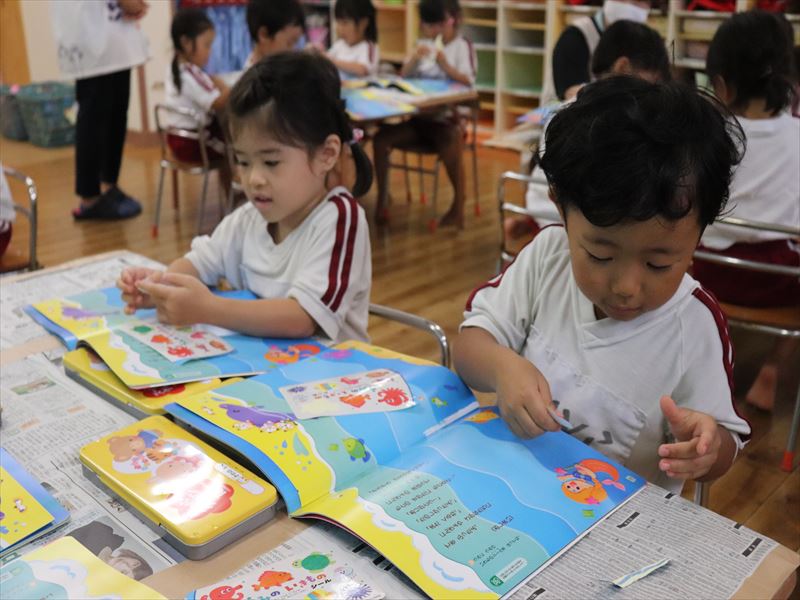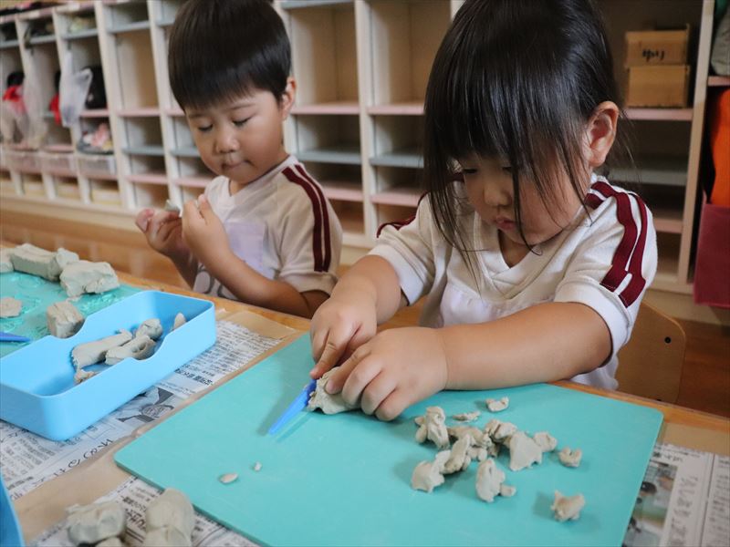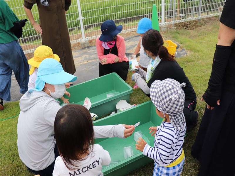 きく組さん、自分達でポイを作ってスーパーボールすくい