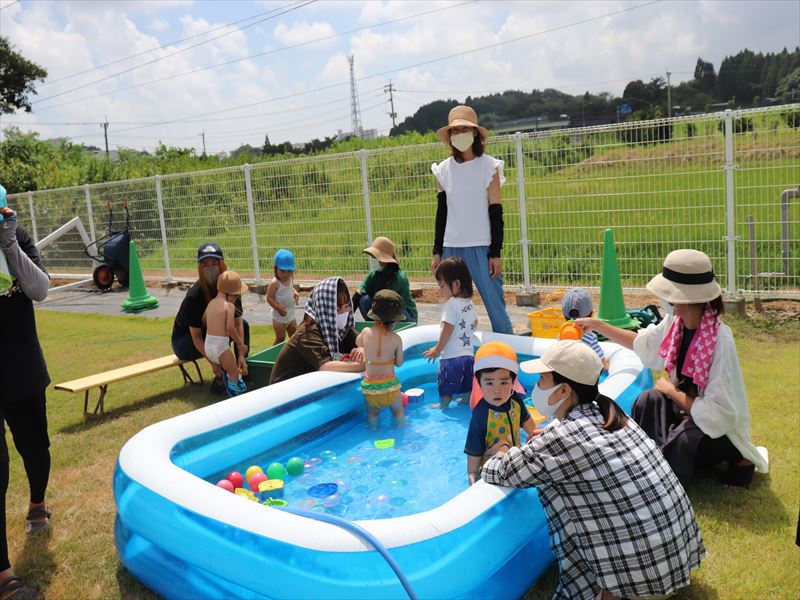 今日のつぼみくらぶでは、最後のプール♪氷をさわって涼を感じます
