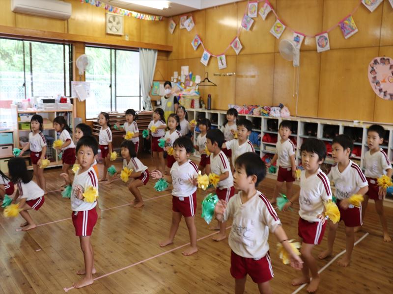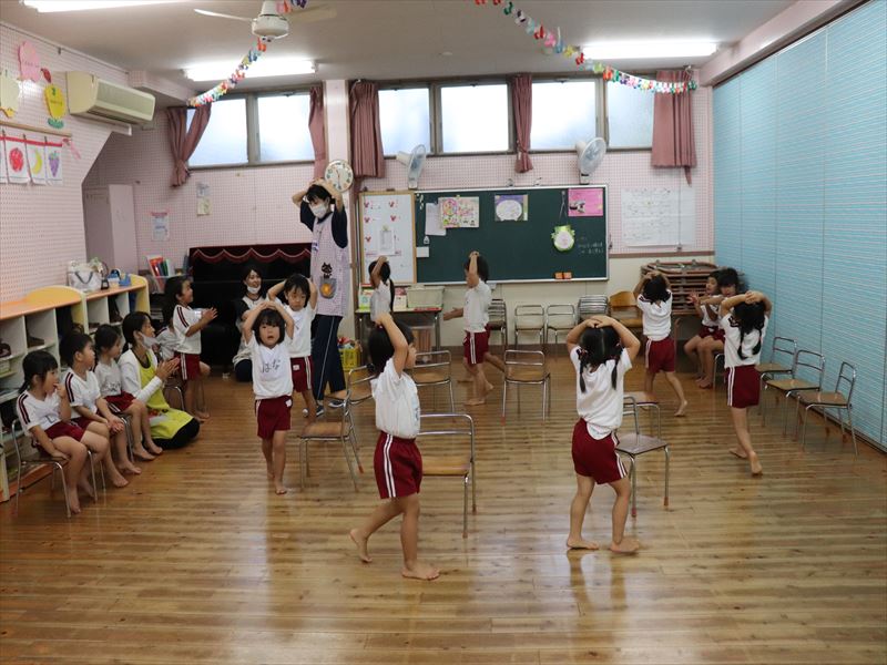 もも組さん、教室でダンスの確認です。