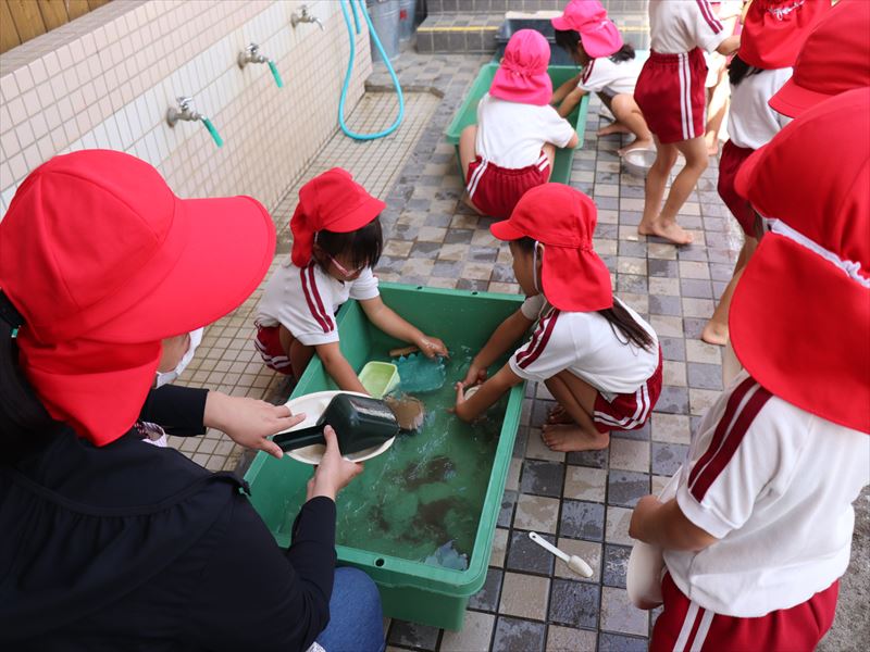 自分たちで使ったままごとをきれいに洗っています♪