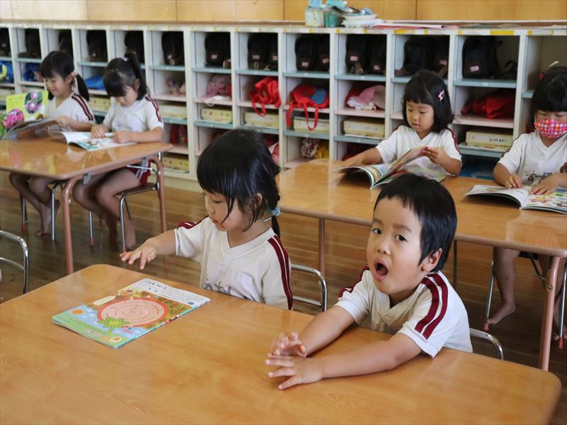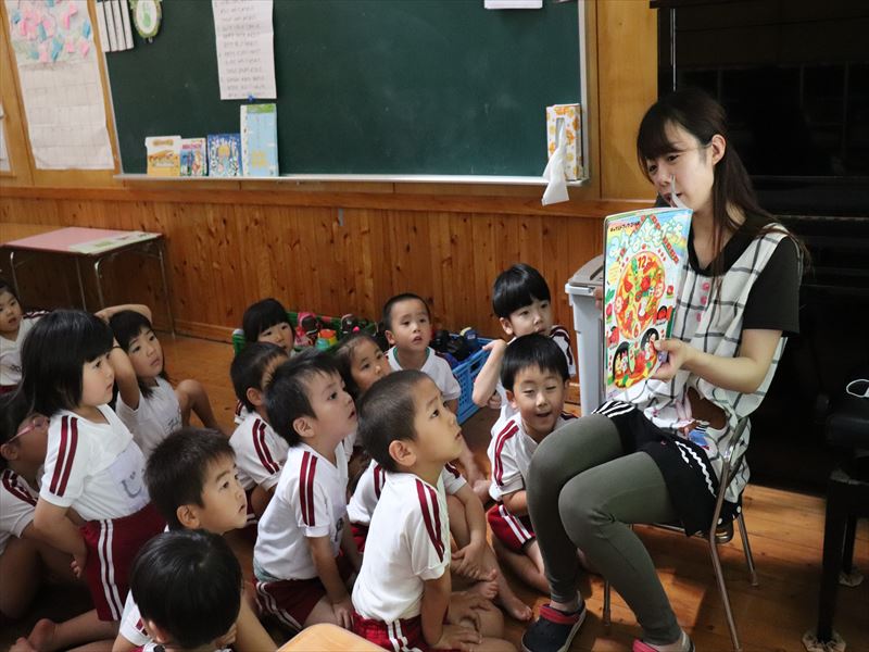 まずはみんなと一緒に読み聞かせです。