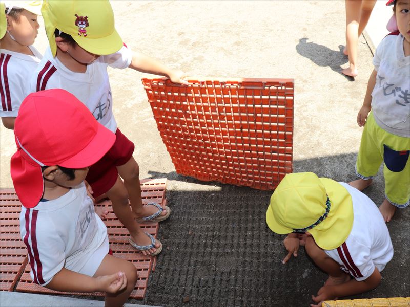今日は外で水遊びをしている学年もあれば