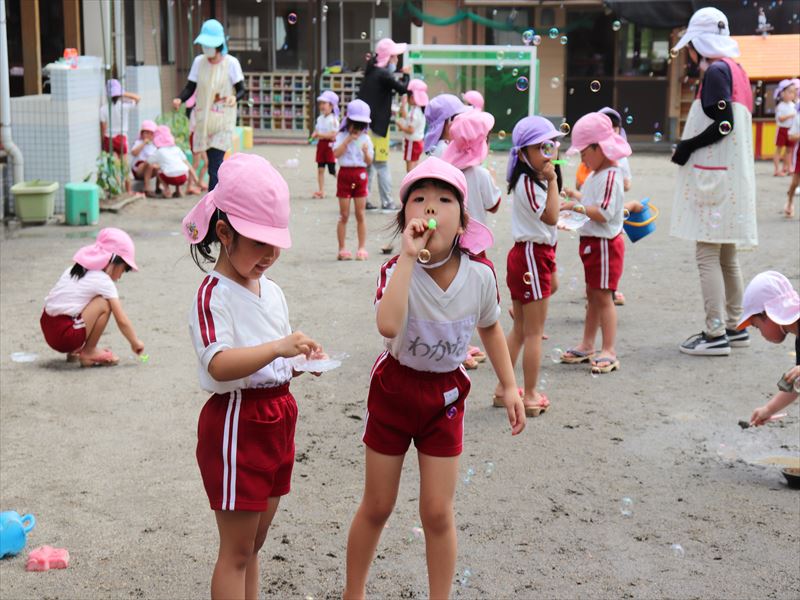 年中さんはシャボン玉をみんなで楽しんでいましたよ