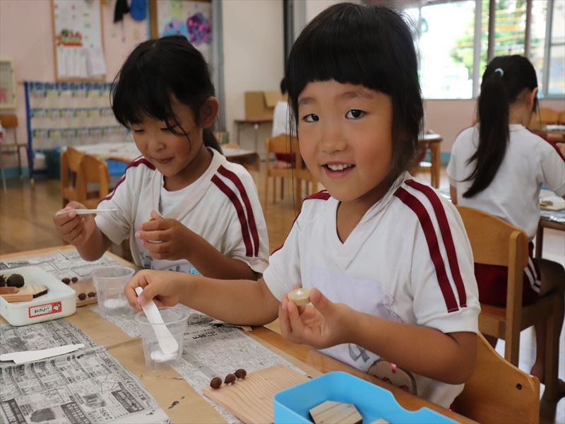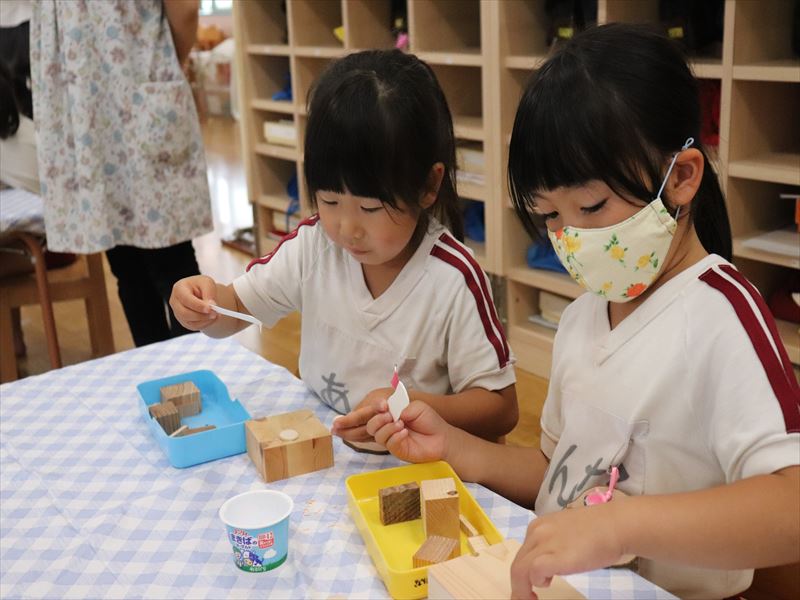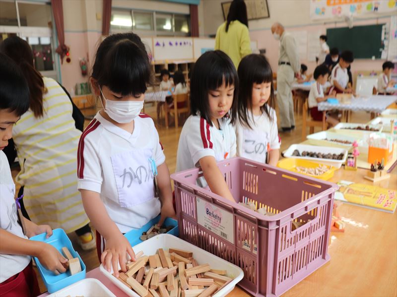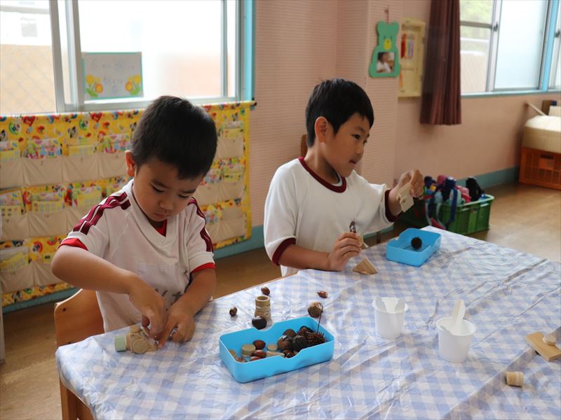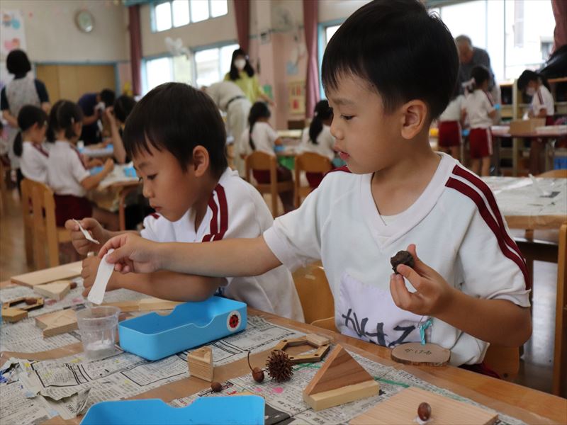 | 年長さんは今日は2回目の木育活動です。 | ||