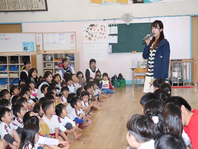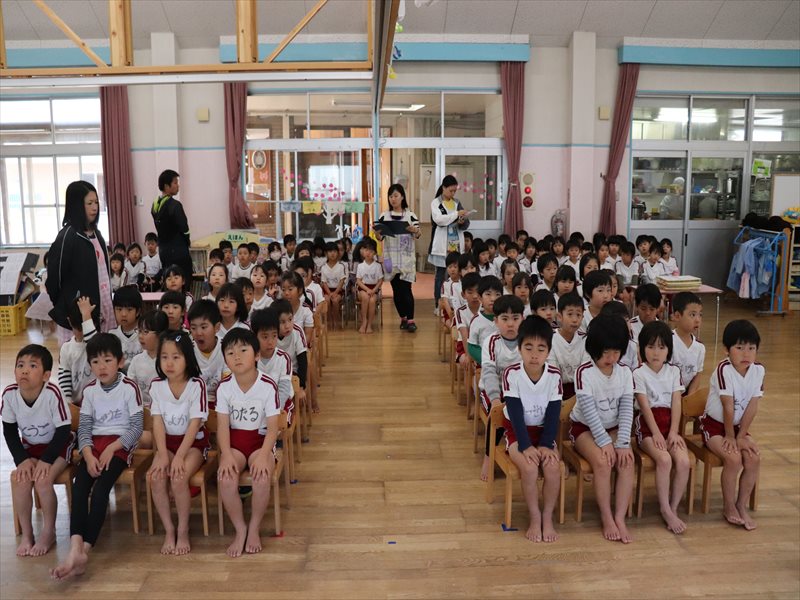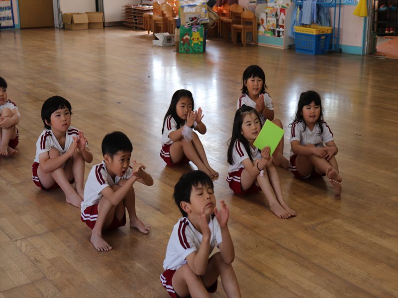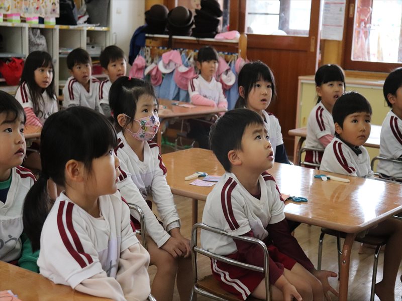 もも組さん、先生の話を聞いています。