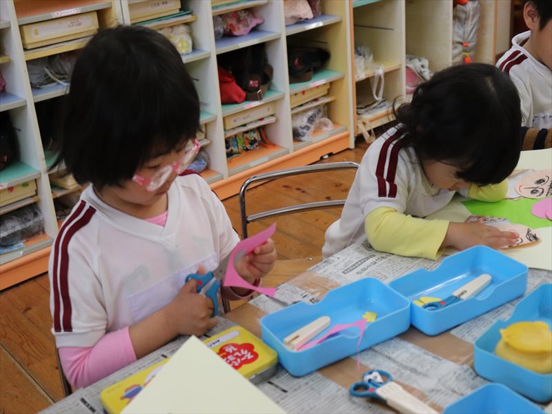 年少さん、ひなまつり制作だね。