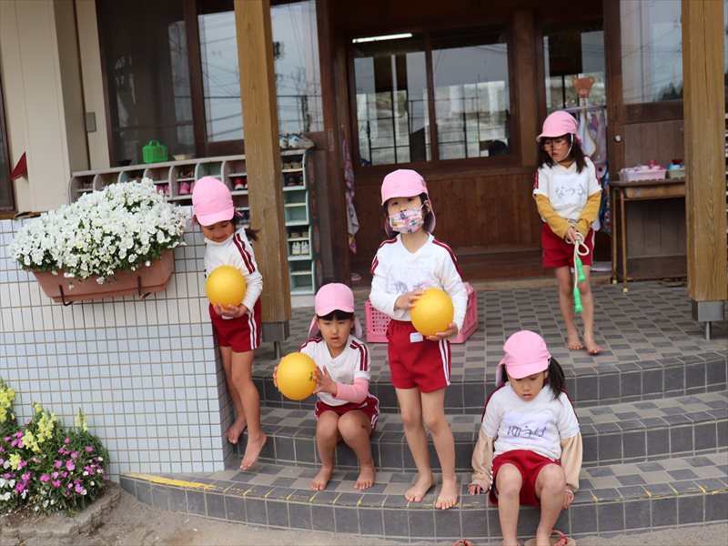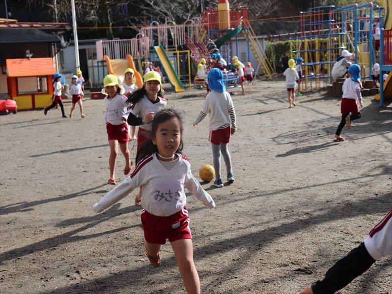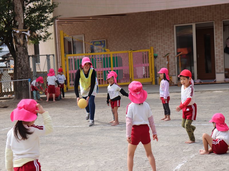 年少さん、転がし中当てを楽しんでいました。