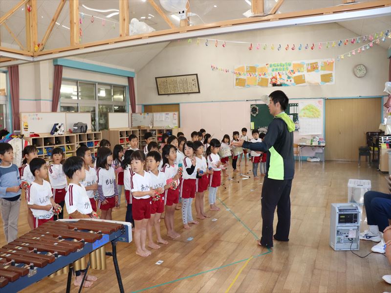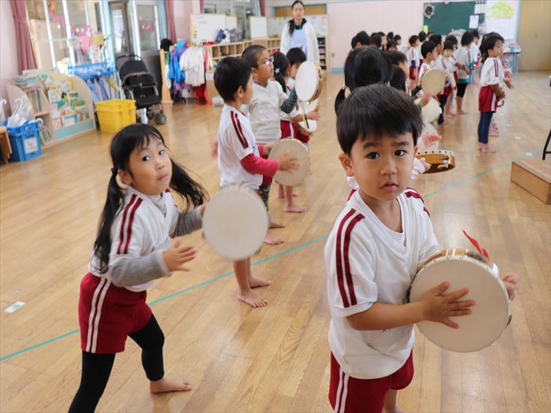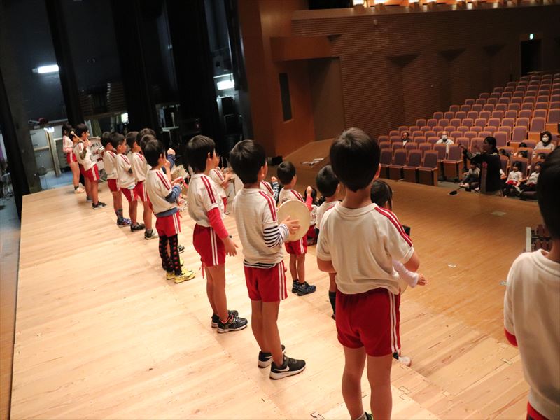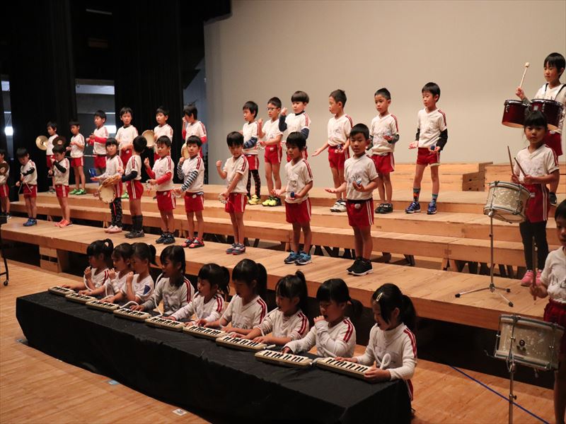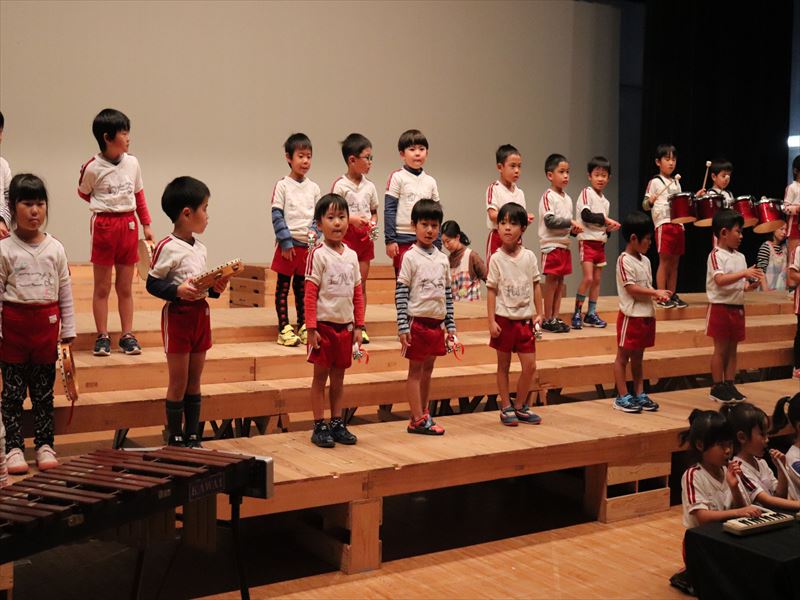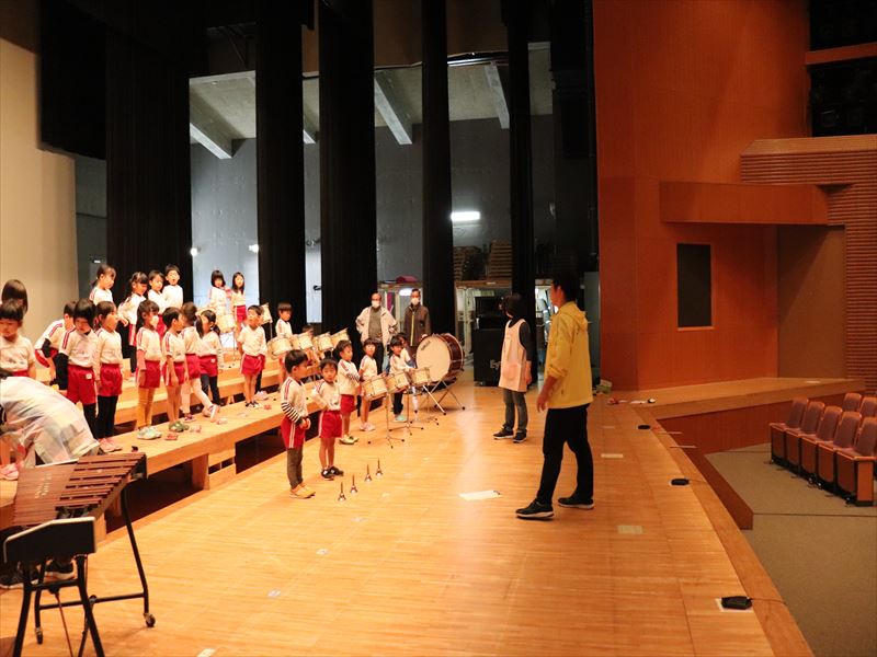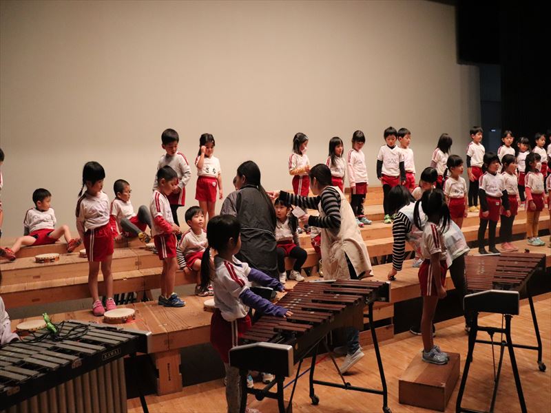 年中さんはホールで合奏の練習をしていました