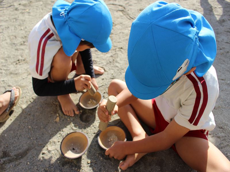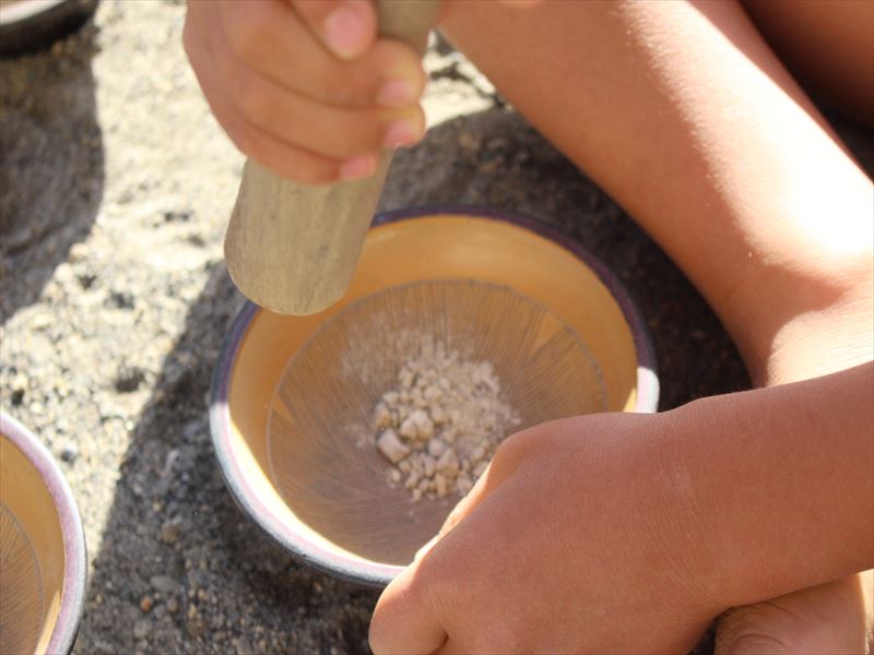 軽石をすりつぶしていました