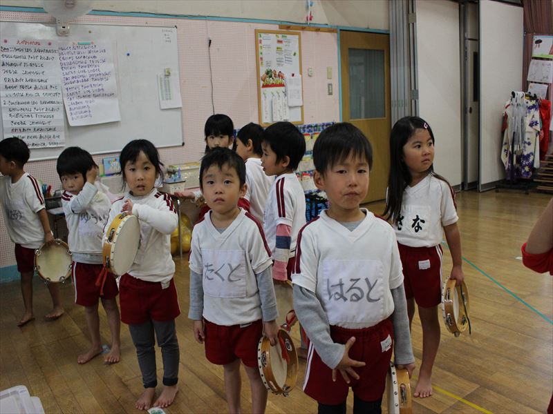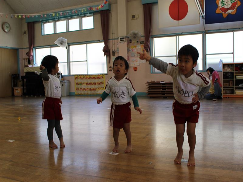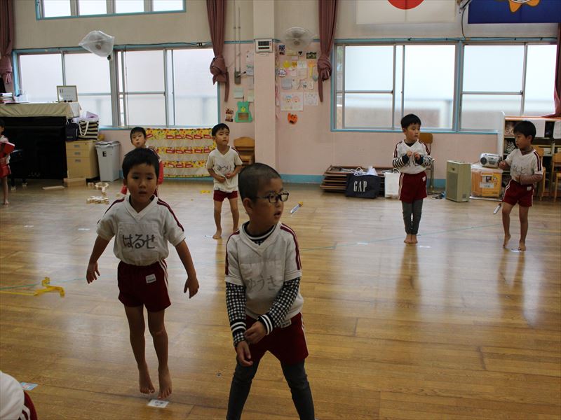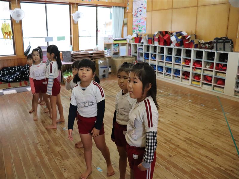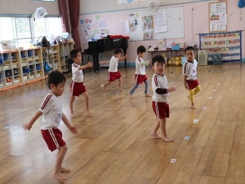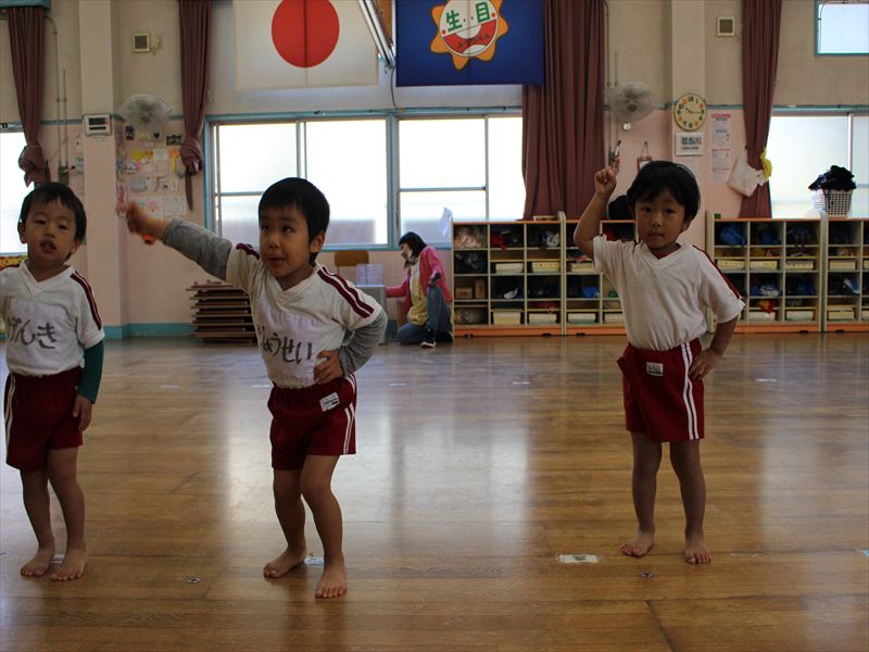 年少さんホールにて全体練習です。