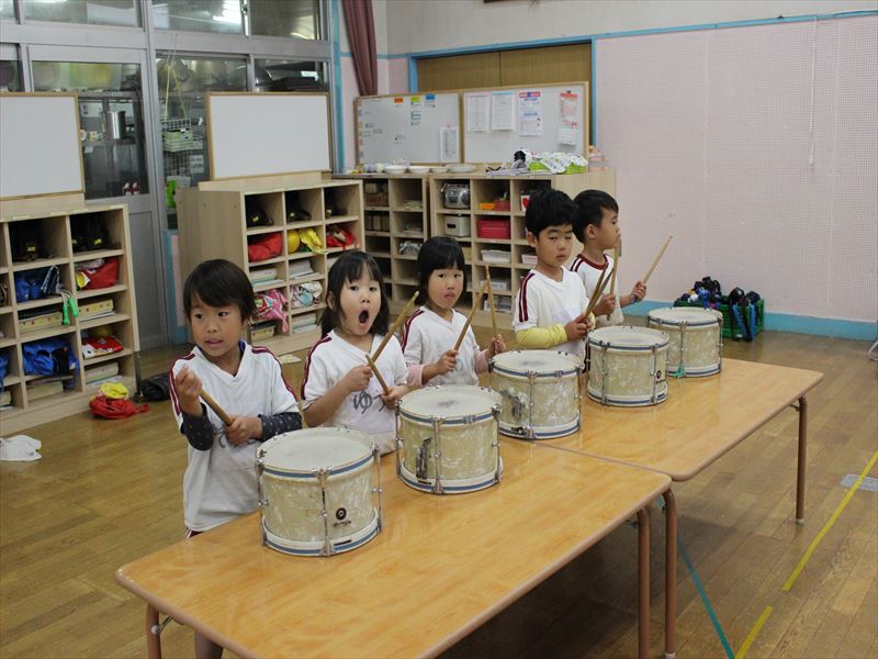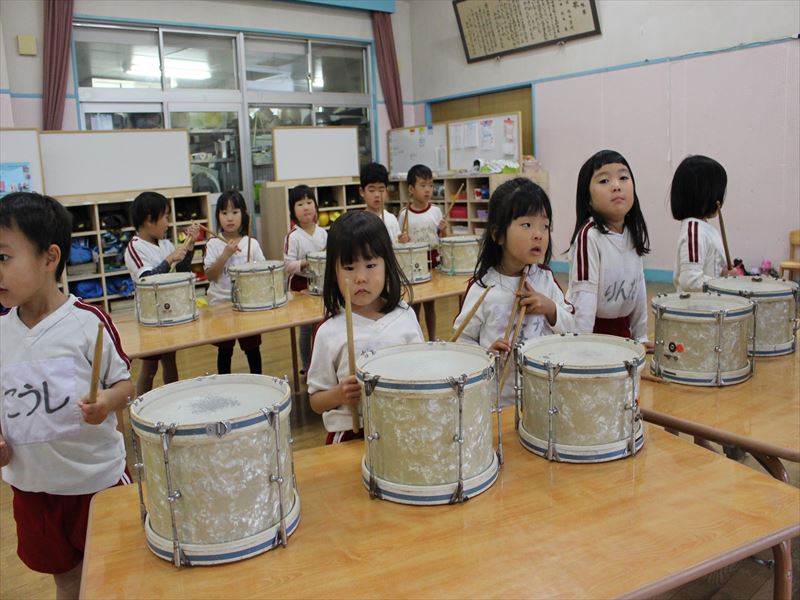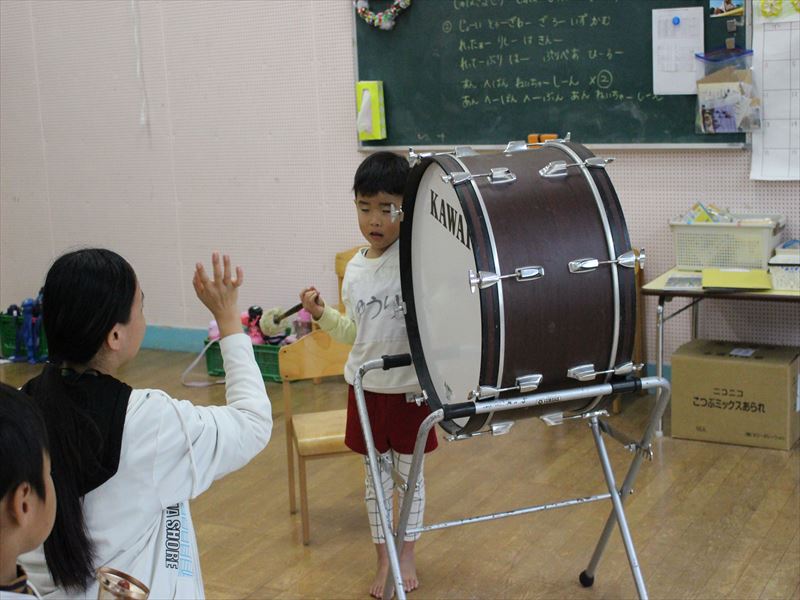 リズムよく大太鼓を叩けています