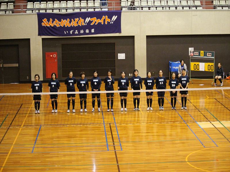 予選リーグ 1試合目、VS 宮崎幼稚園 1セット目を奪われるも、2セット目で取り返し、ファイナルセットの接戦を見事ものにし1勝をあげました!