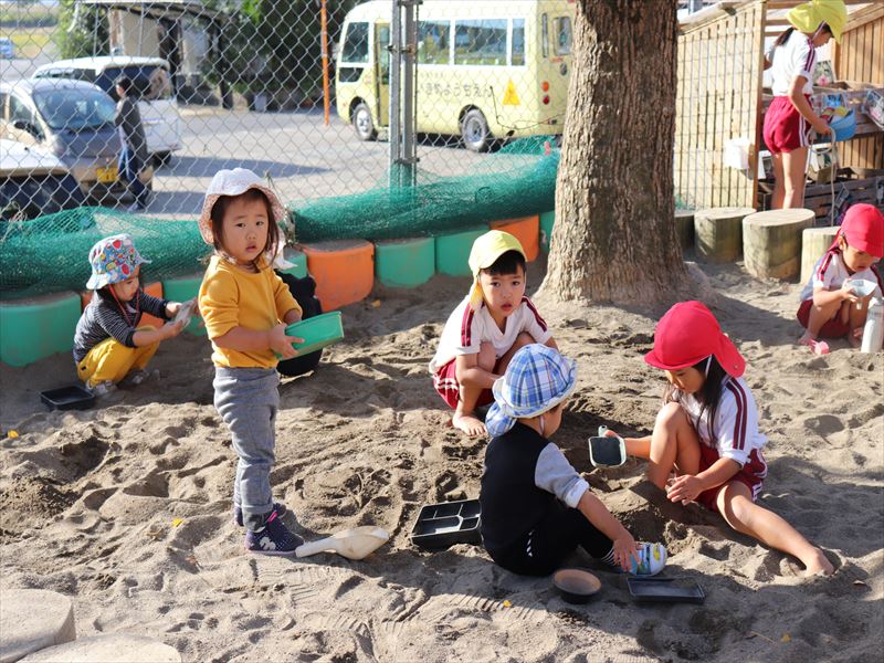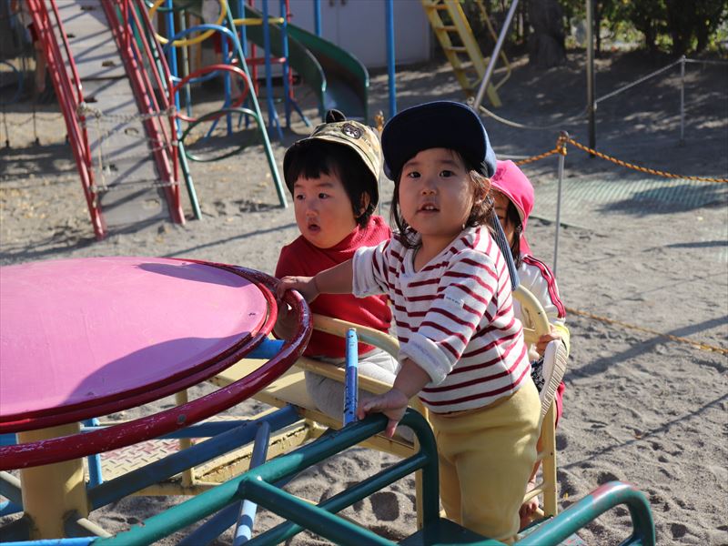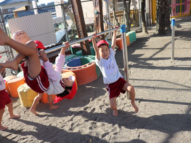 ちゅうりっぷ組の子ども達、朝お外で遊びました。