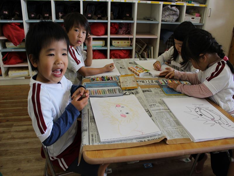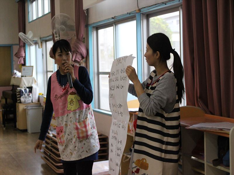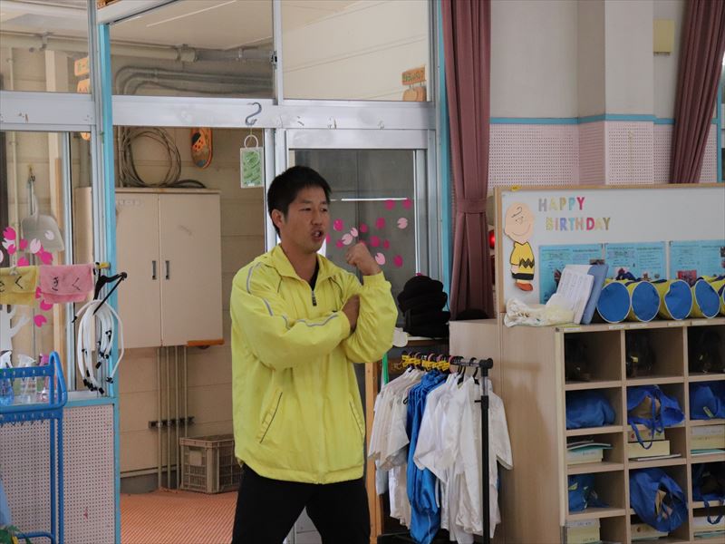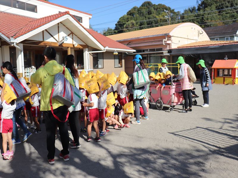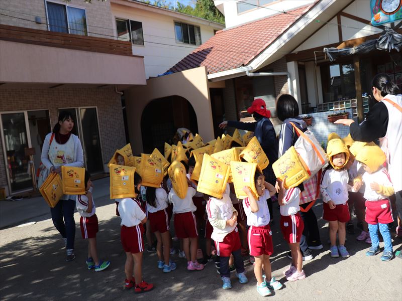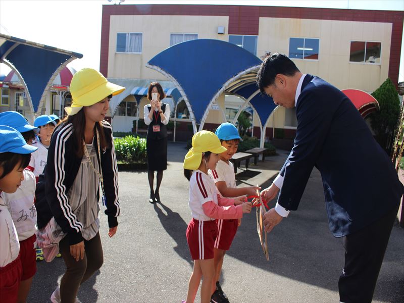 勤労感謝を伝えに年長さんが梅田学園生目校へ感謝を伝えにいきました。