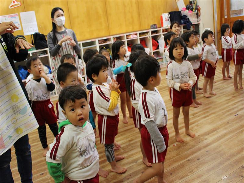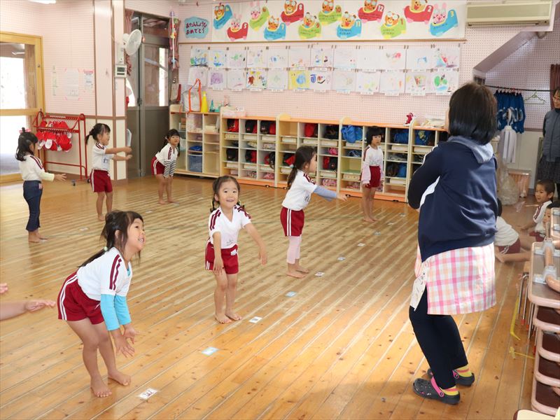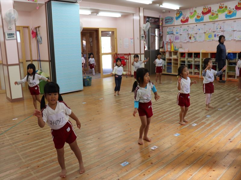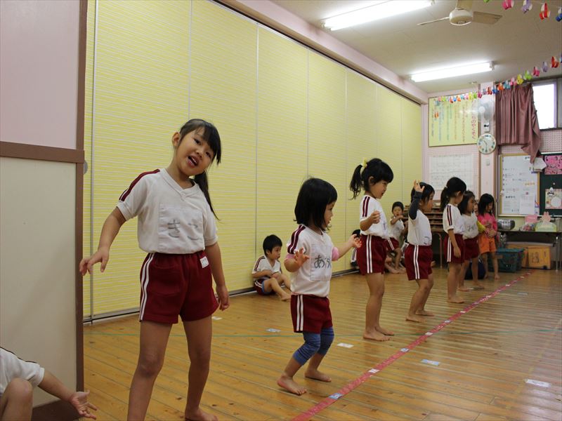 さくら組さんも年少棟を広げてダンスの練習をしていました♪