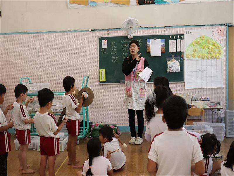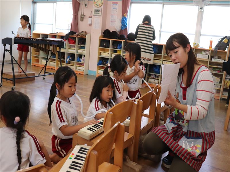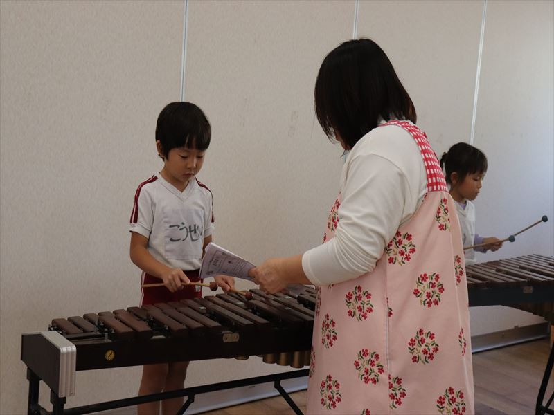 木琴の指導をしています。