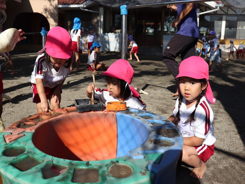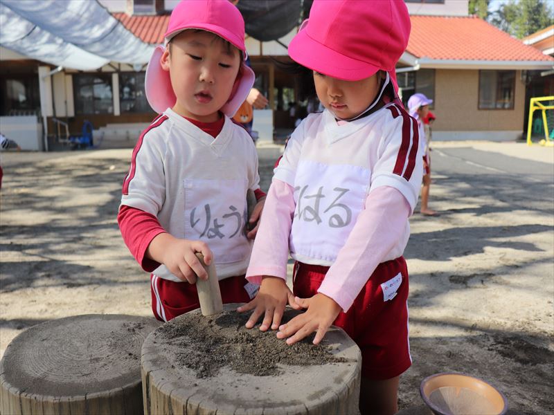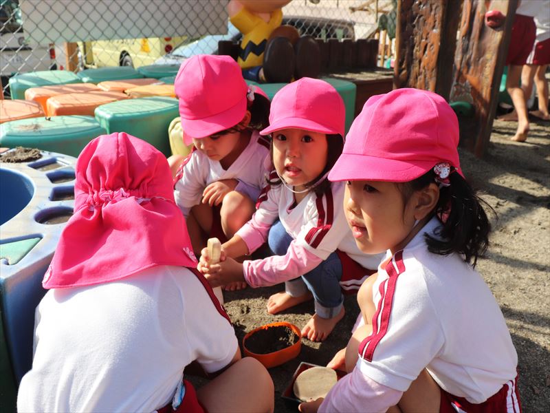園庭のイチョウの木から葉が落ち始め、集める子どもたちをよく見かけます