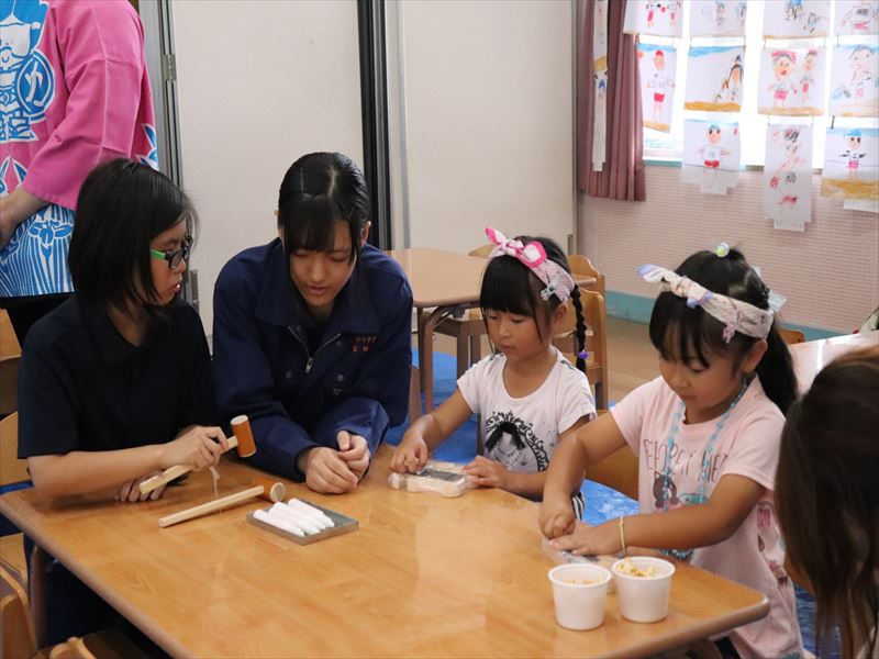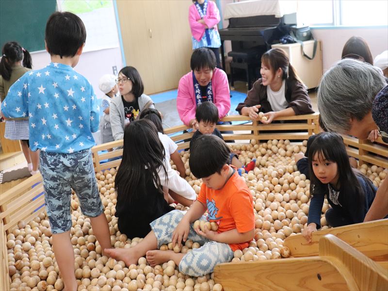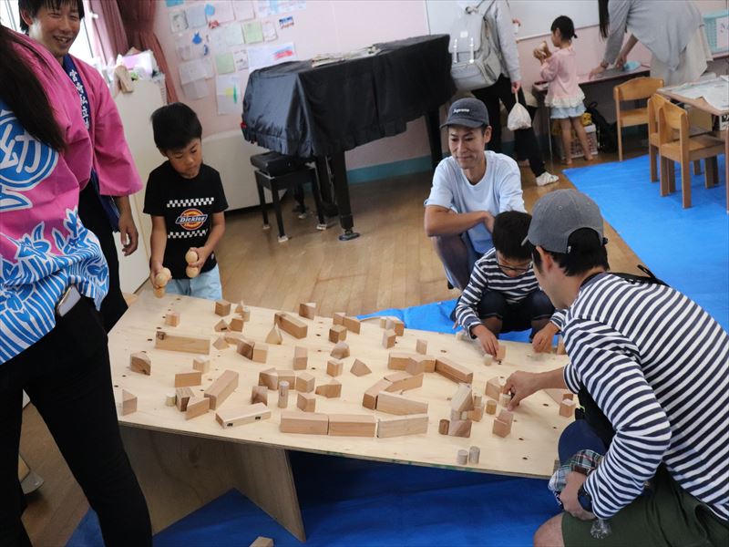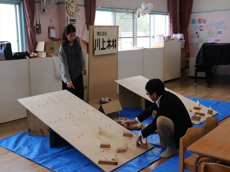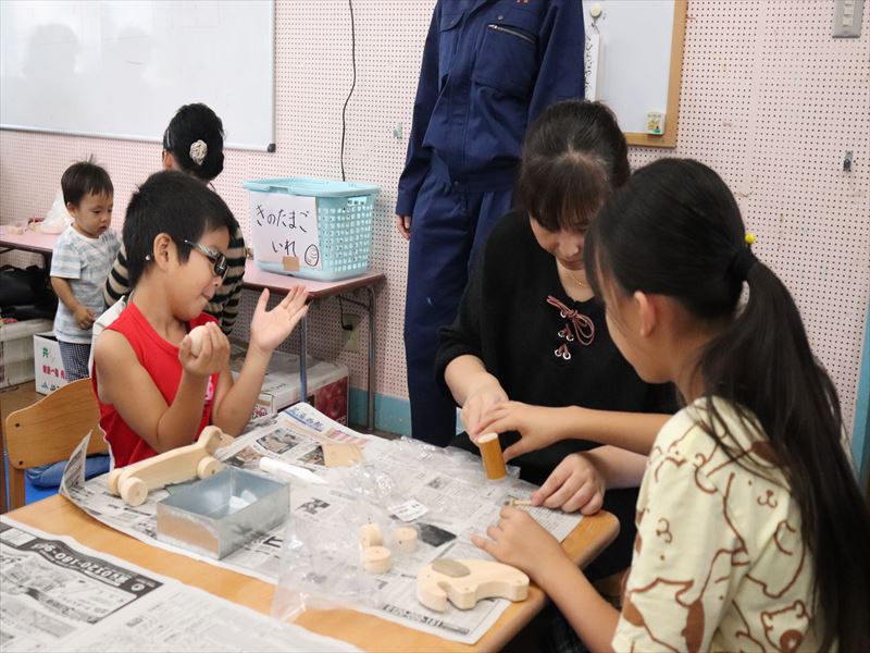 ホールでは、宮崎県森林林業協会や木育ネットワーク、川上木材、宮崎工業高校の生徒さんのご協力で盛り上がりました