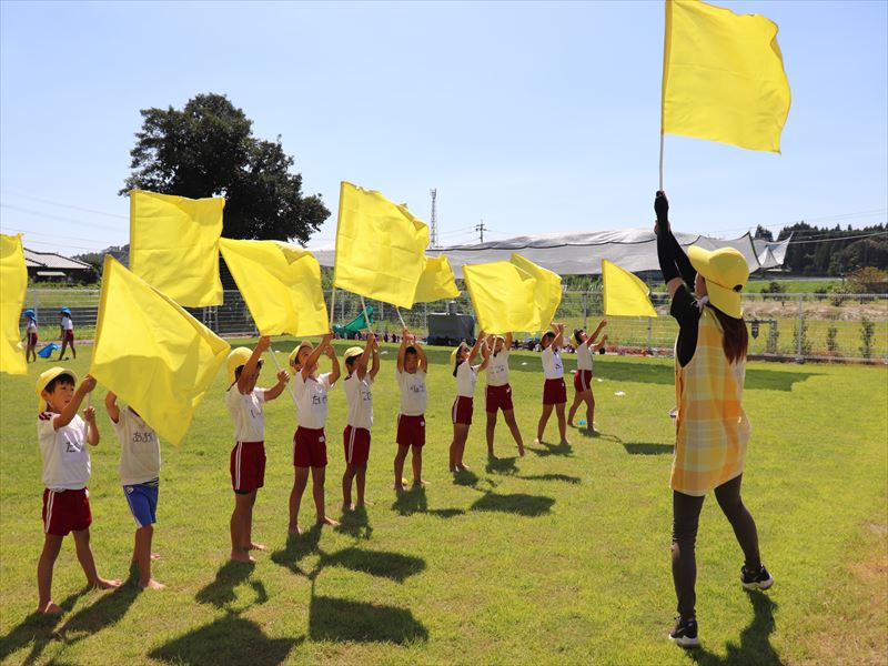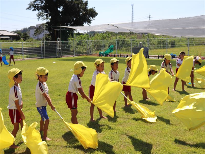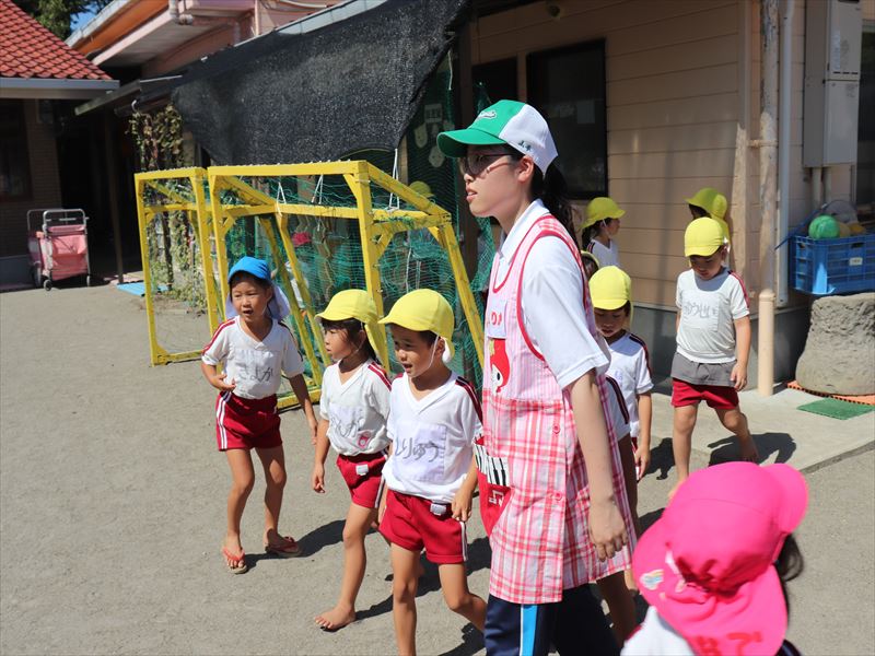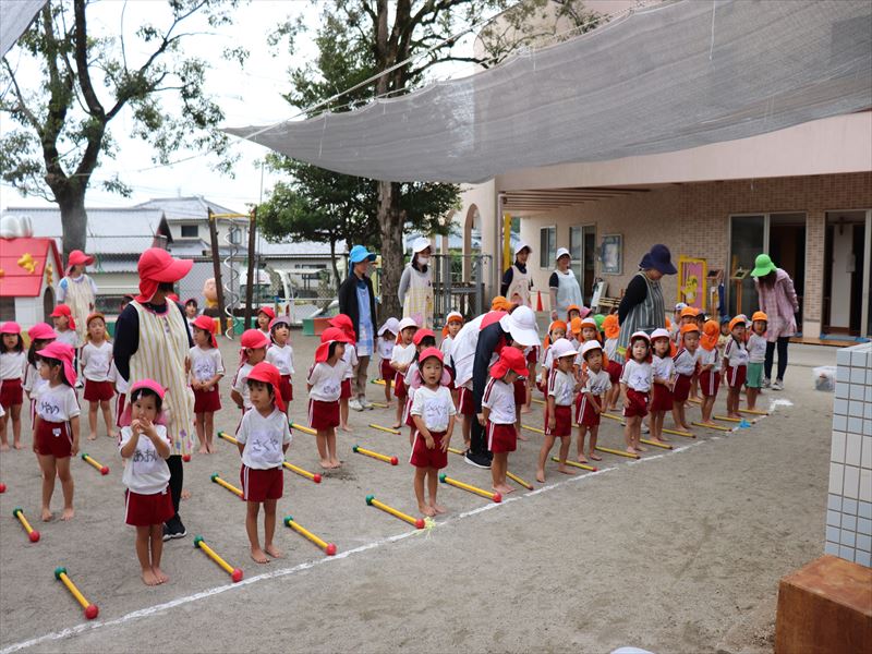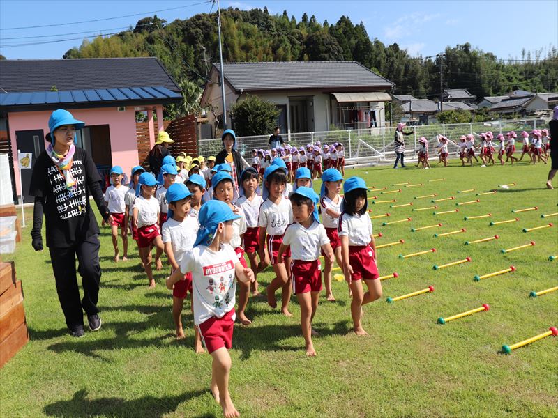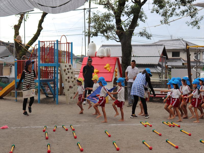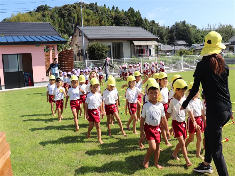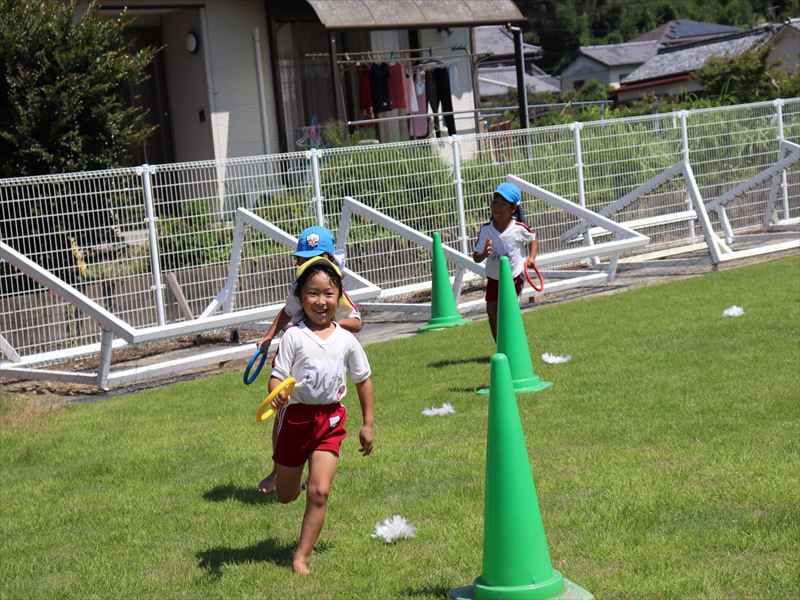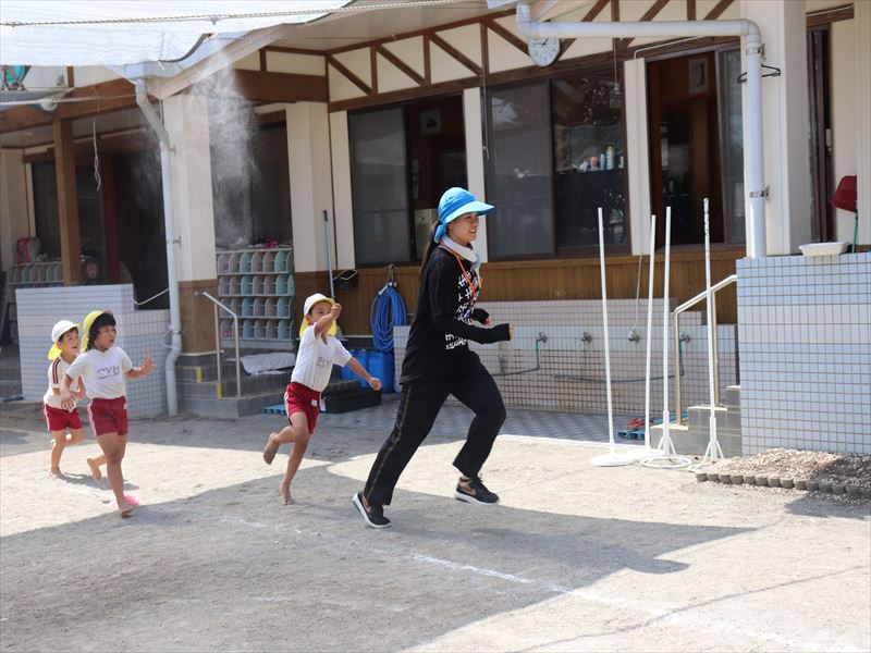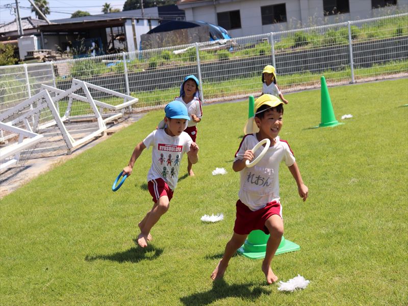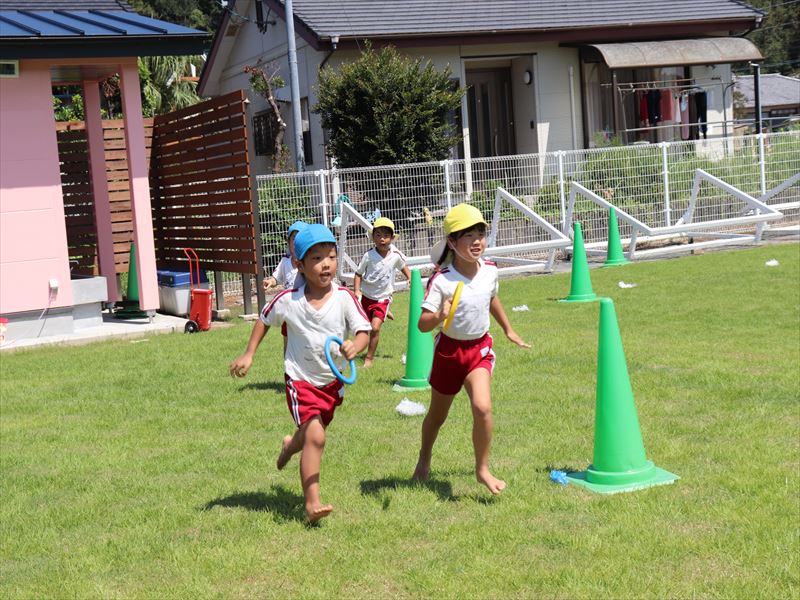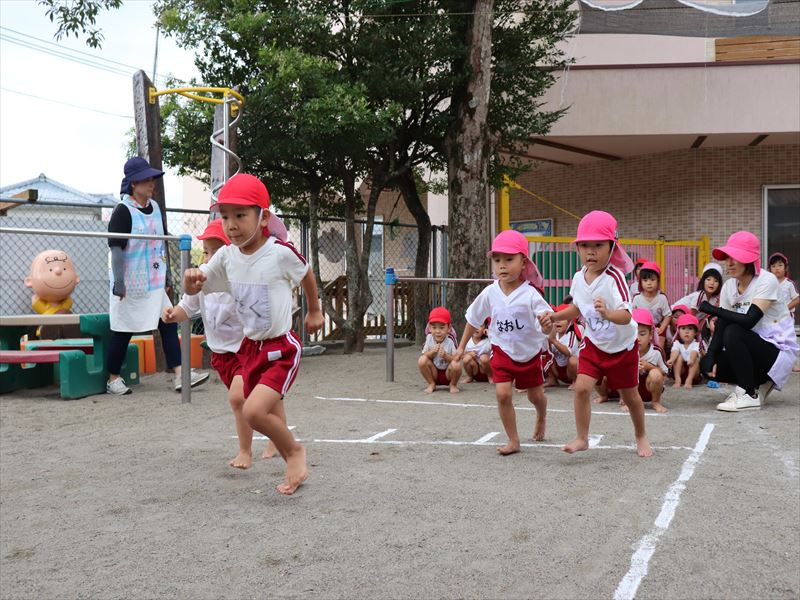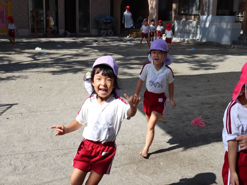 園庭では、かけっこやリレーなど運動会の遊びを子ども自ら楽しんでいました。