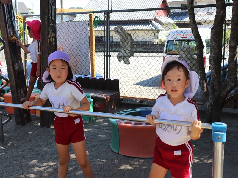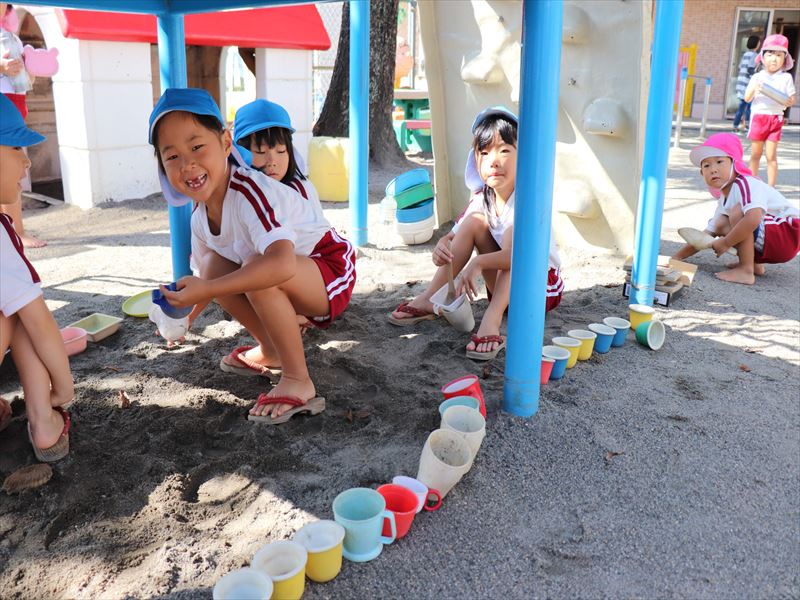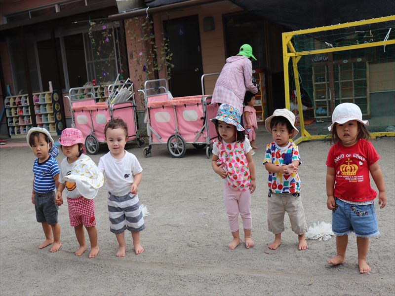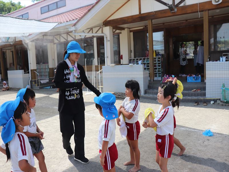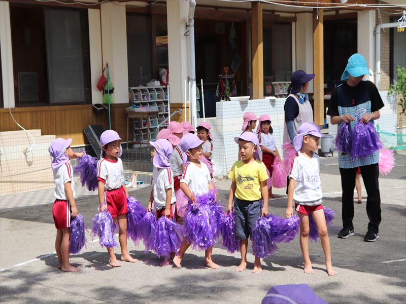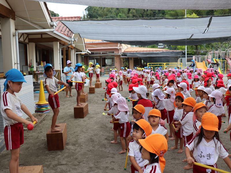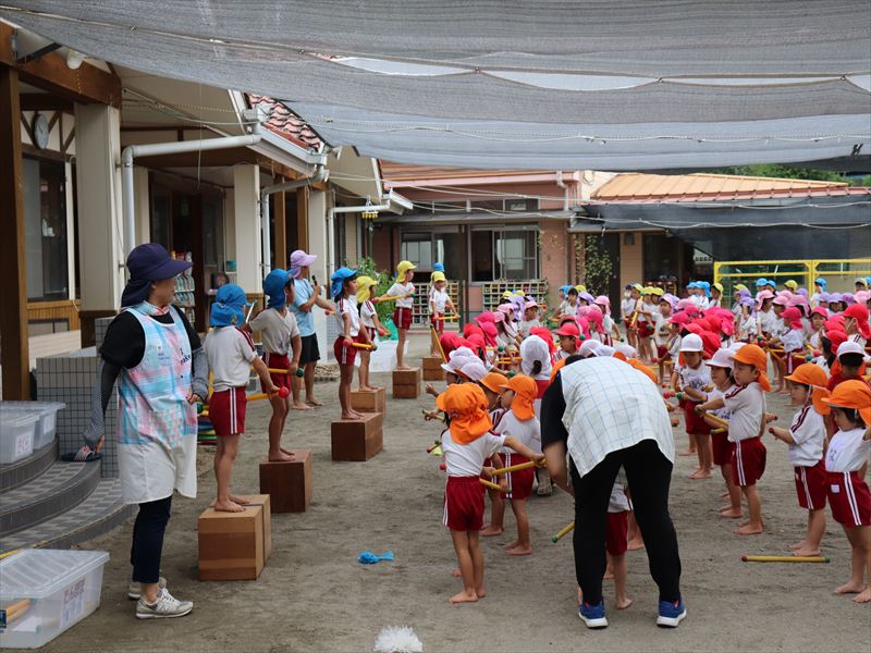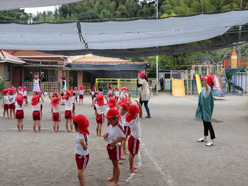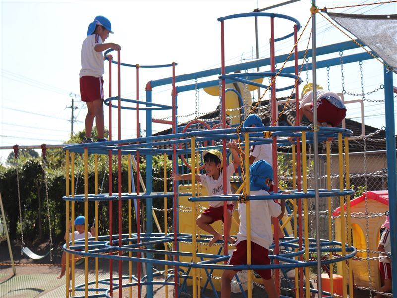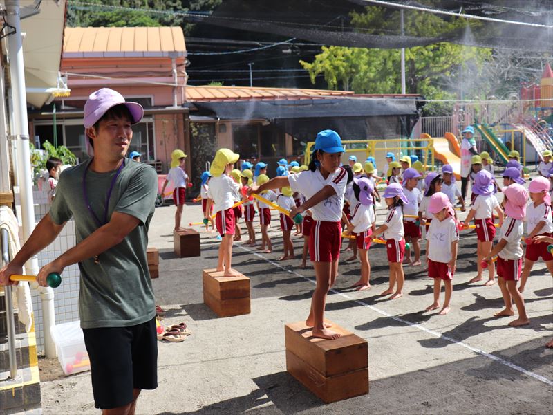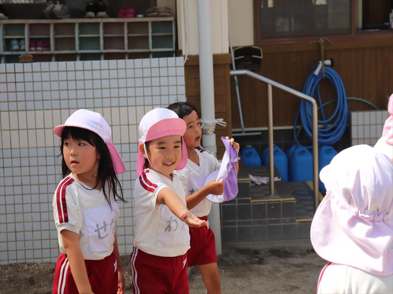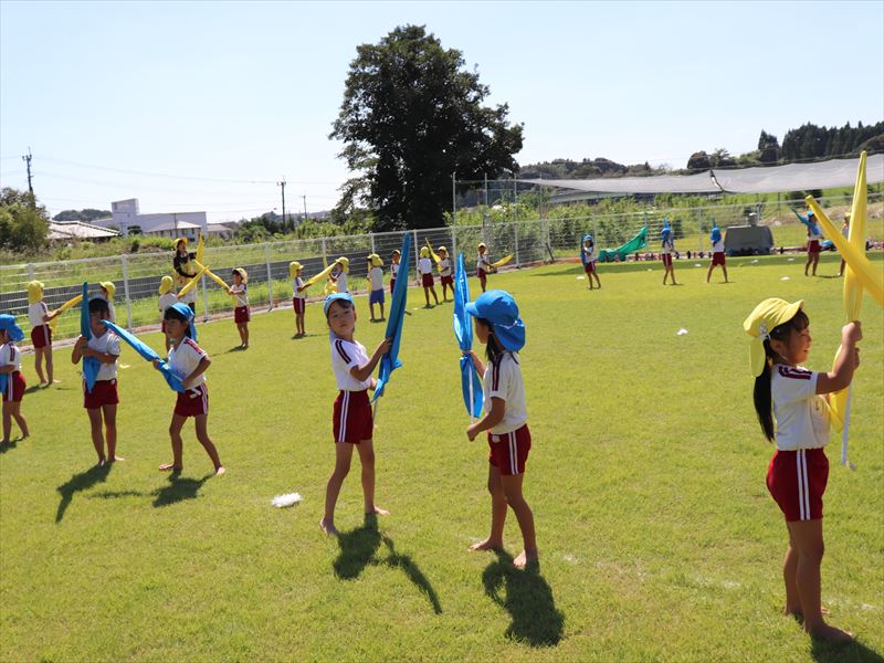 園庭では、かけっこやリレーなど運動会の遊びを子ども自ら楽しんでいました。