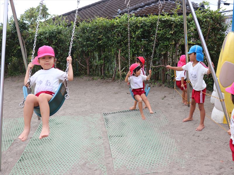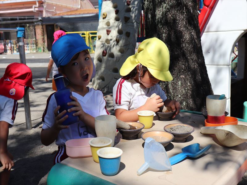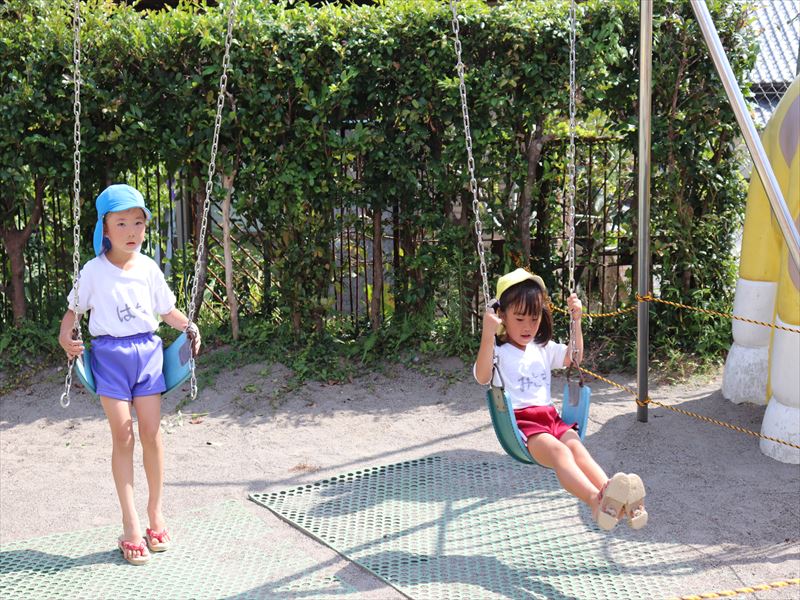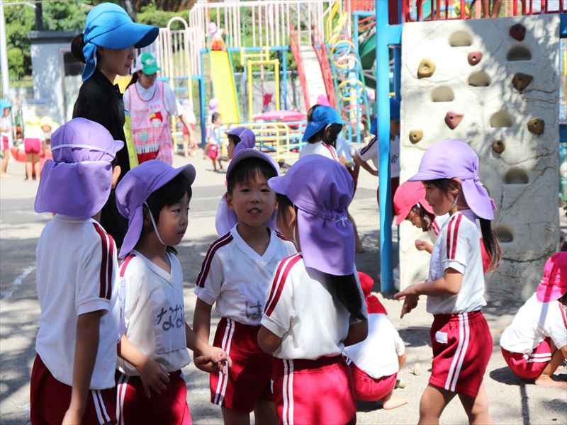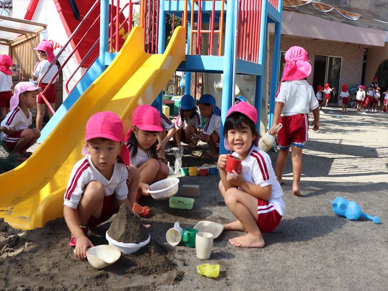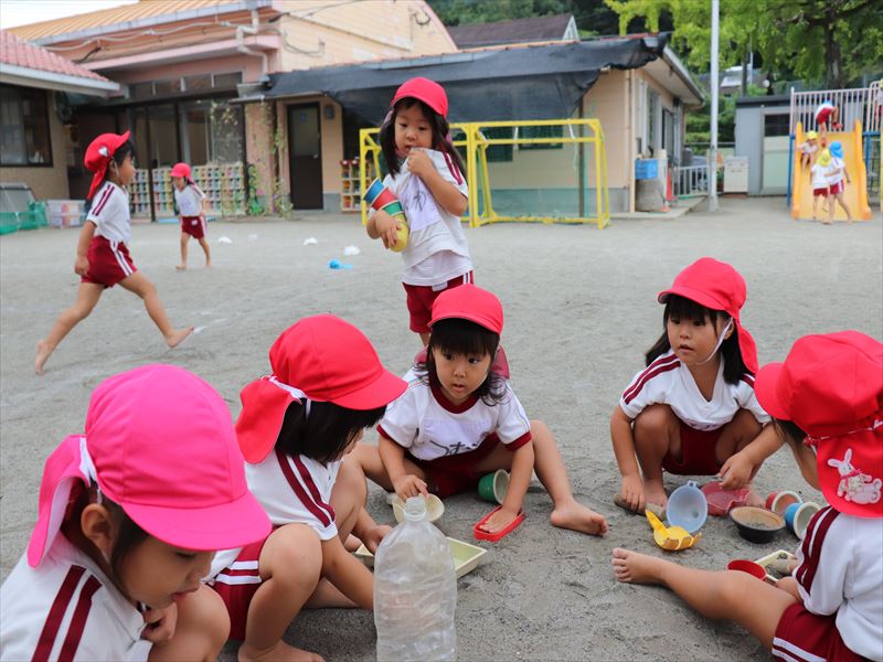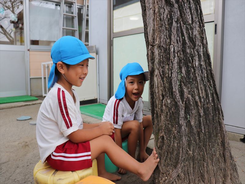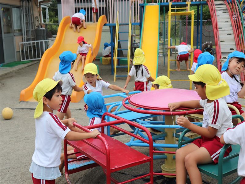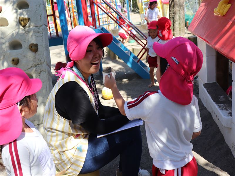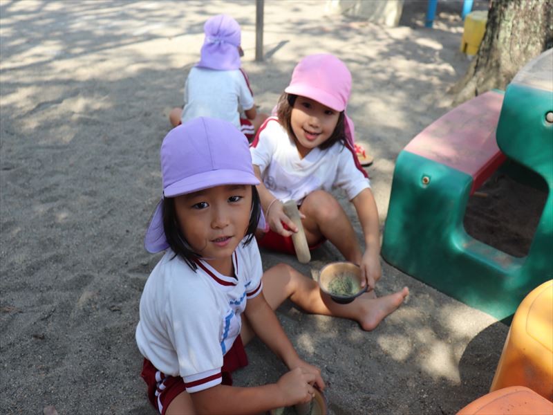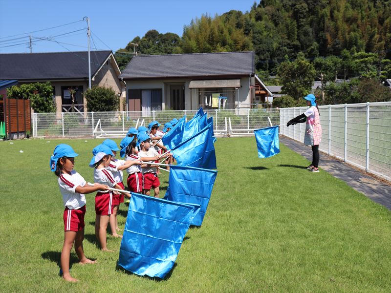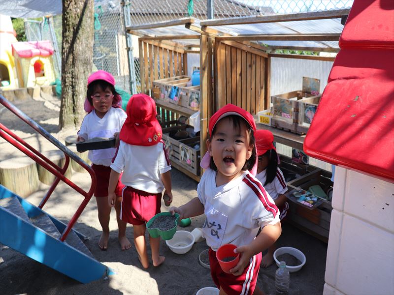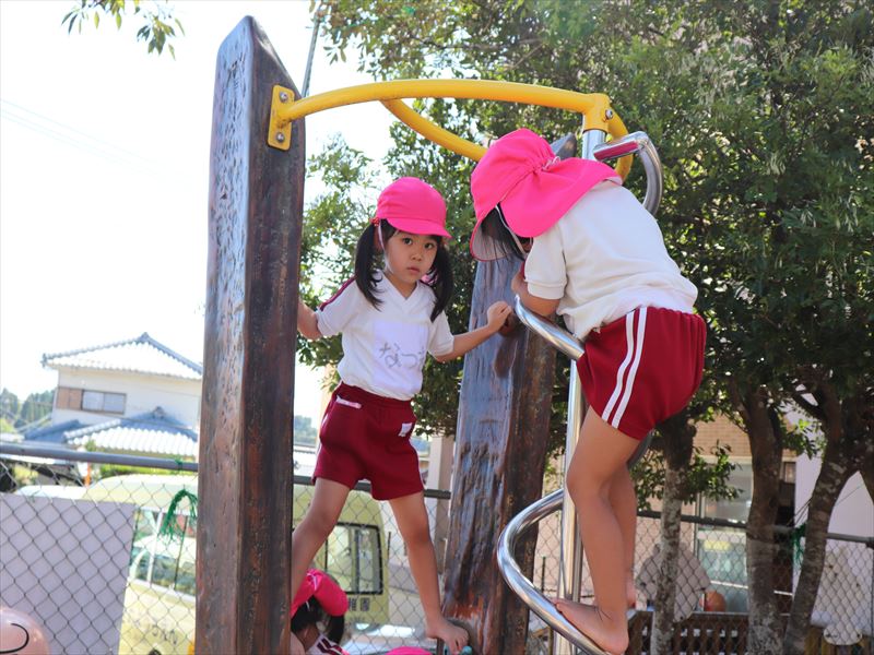 園庭では、かけっこやリレーなど運動会の遊びを子ども自ら楽しんでいました。
