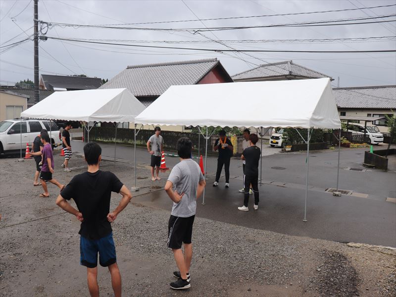 今日は夏祭り!朝からお父さん役員や事業部さんが準備に取り掛かっています