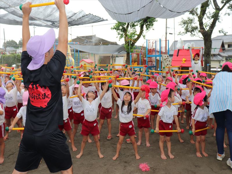 外でもバトン体操を行いました。