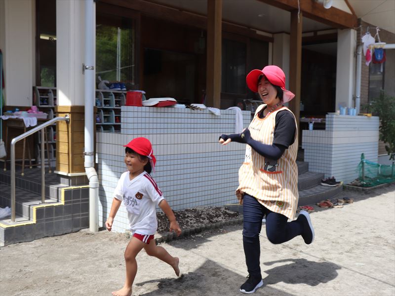 待て待て~♪鬼ごっこを先生と楽しんでいました。