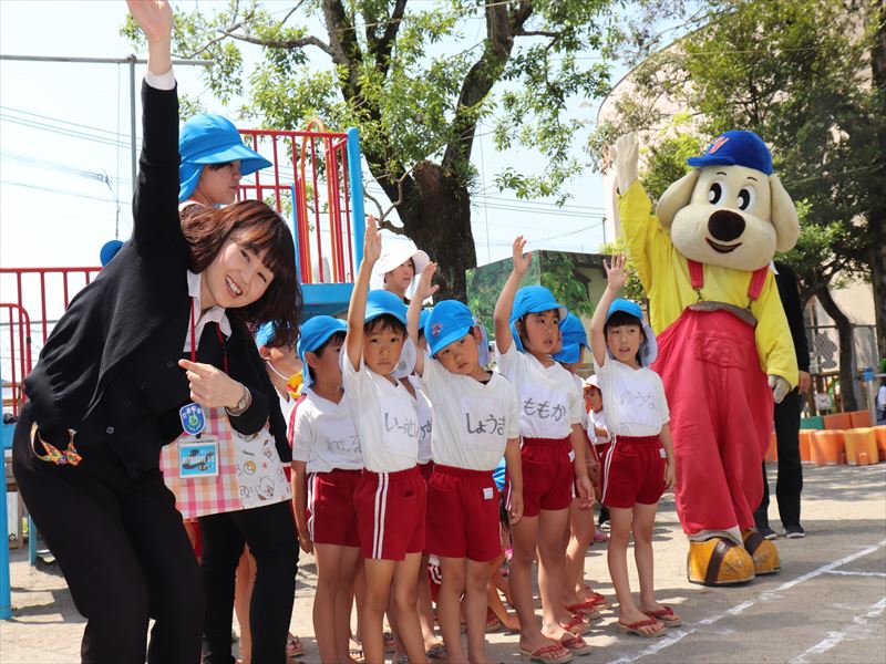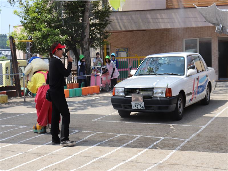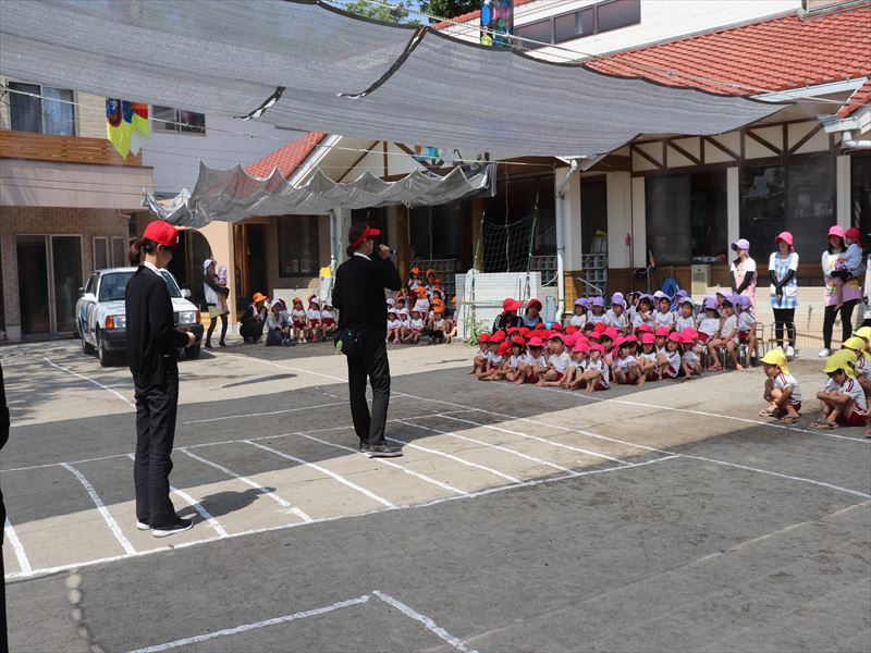 | 年長さんから年少々さんまで横断歩道の渡り方を習いました。 | ||