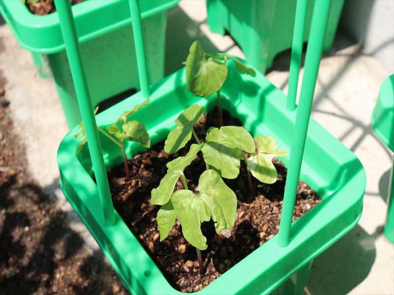 | 年長さんのアサガオが順調に成長しています。 | ||