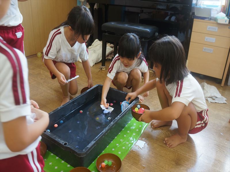 きく組さん、自分達でポイを作ってスーパーボールすくい