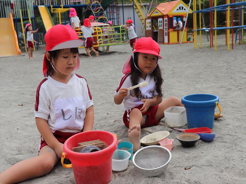 砂場では見立て遊びをしていましたよ