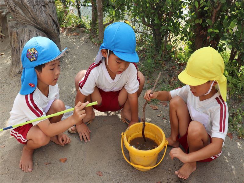 男の子は集まって虫探しをしていましった