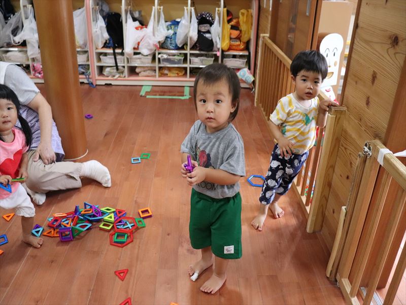 1歳児さん朝の自由あそび時間です。