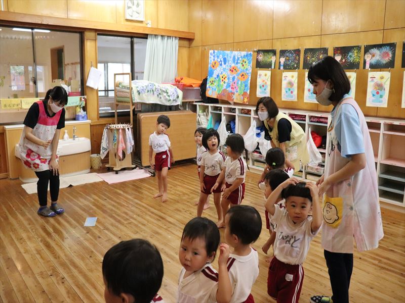 今日のつぼみくらぶでは、最後のプール♪氷をさわって涼を感じます